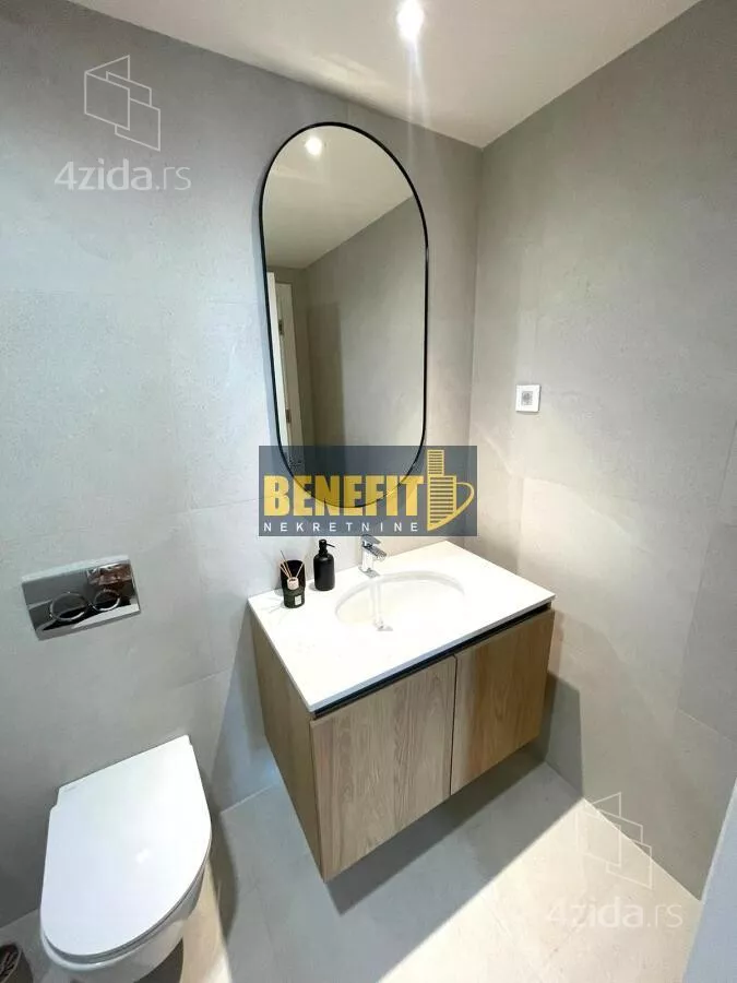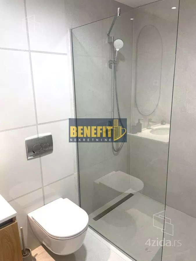 - Opremljenost: Namešteno - internet, interfon, TV, klima, veš mašina, sudo mašina, frižider, rerna, ležaj, plakar