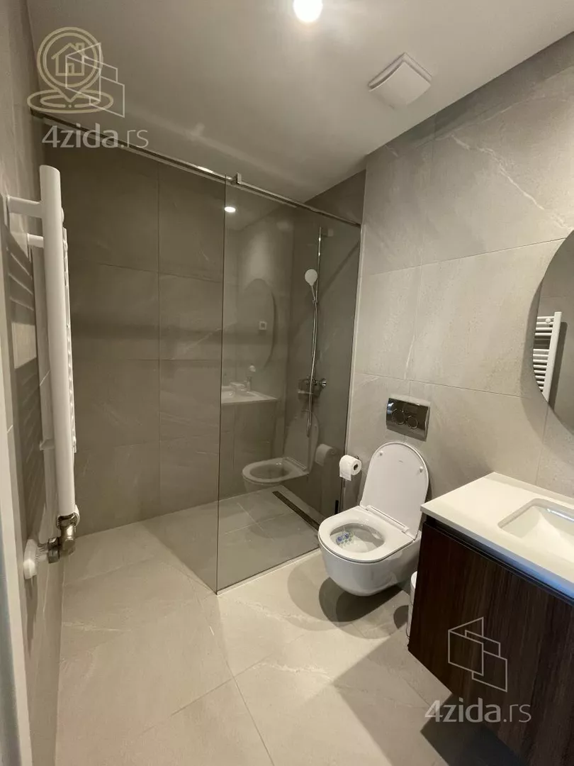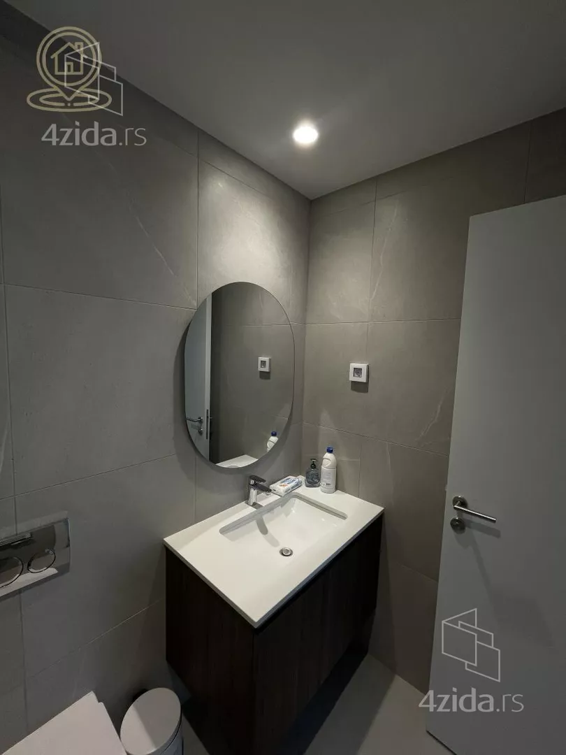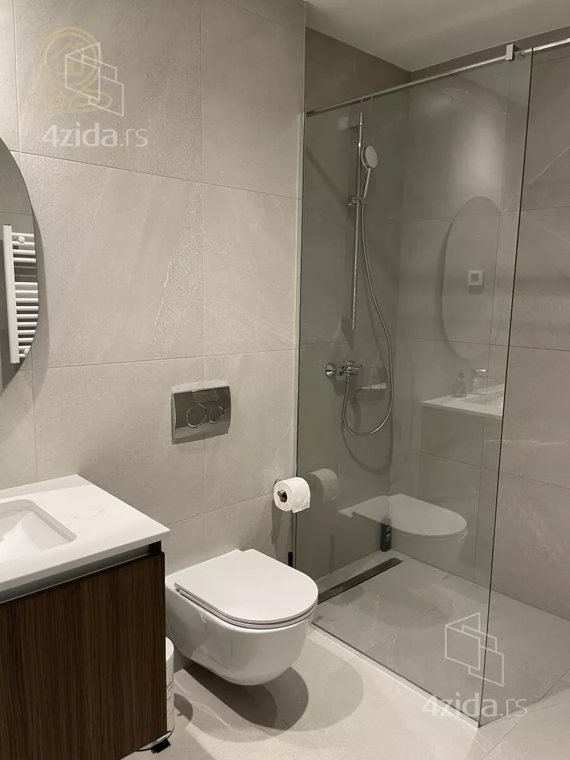 Stan je potpuno opremljen modernim nameštajem i spreman za useljenje. U okviru zgrade nalazi se recepcija, obezbeđenje 24/7, garaža i neposredna blizina reke, tržnog centra Galerija, restorana i kafića.