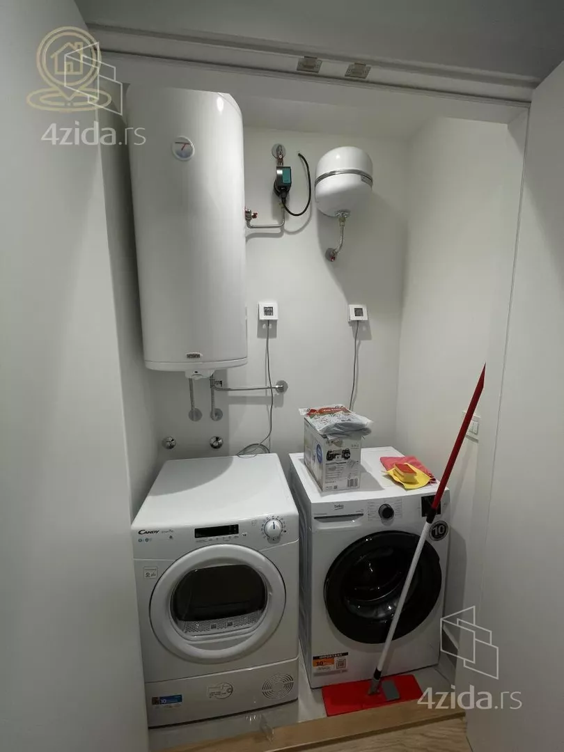 - Opremljenost: Polunamešteno - internet, interfon, klima, veš mašina, sudo mašina, frižider, rerna, plakar