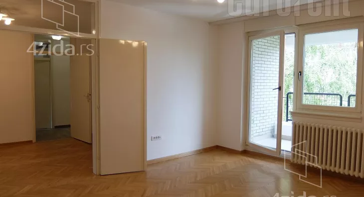 Lep stan smešten na mirnoj lokaciji, na početku Bežanijske kose. Zgrada iz 90-tih godina, lepo održavana i okružena zelenilom. Stan je nedavno renoviran i u dobrom je stanju. Poseduje tri spavaće sobe sa plakarom u svakoj, veliki dnevni boravak sa izlaskom na prostranu terasu, centralnu trpezariju sa izlaskom na zastakljenu lođu, zasebnu kuhinju sa novijim elementima i belom tehnikom i manjom ostavom i dva mokra čvora, od kojih je jedan toalet, a drugi kupatilo sa kadom. Stan je vrlo komforan i lepo organizovan, sunčan i svetao. Pogodan za porodicu ili mirnu kancelarijsku delatnost.
