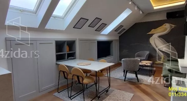 Izdaje se nov, nedavno rekonstruisan stan u potkrovlju. Svetao, prostran i kompletno opremljen modernim nameštajem i opremom. Dvostrano je orijentisan (istok-zapad), što ga čini svetlim i prijatnim za boravak.