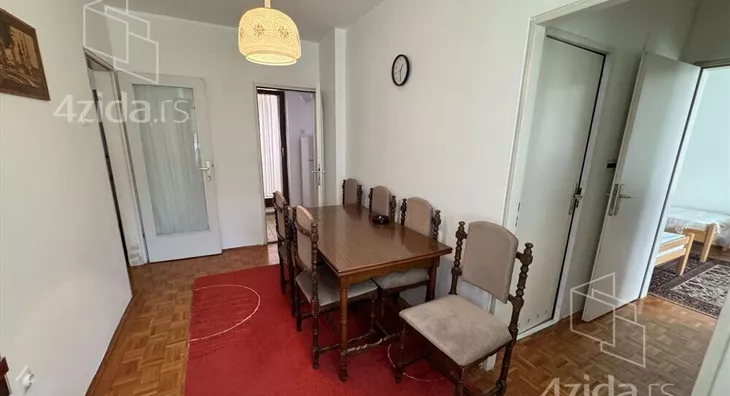 U ponudi za izdavanje lep dvosoban stan koji se nalazi na drugom spratu objekta. Sastoji se od hodnika, dnevnog boravka, spavaće sobe, kuhinje, trpezarije, kupatila, terase, ostave. Stan je kompletno namešten. Ispred zgrade nalazi se veliki javni parking. U neposrednoj blizini nalazi se mnoštvo autobuskih stajališta, škola, vrtić ,marketi, parkovi i ostali komercijalni sadržaji.
