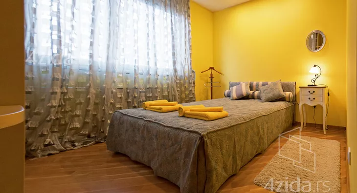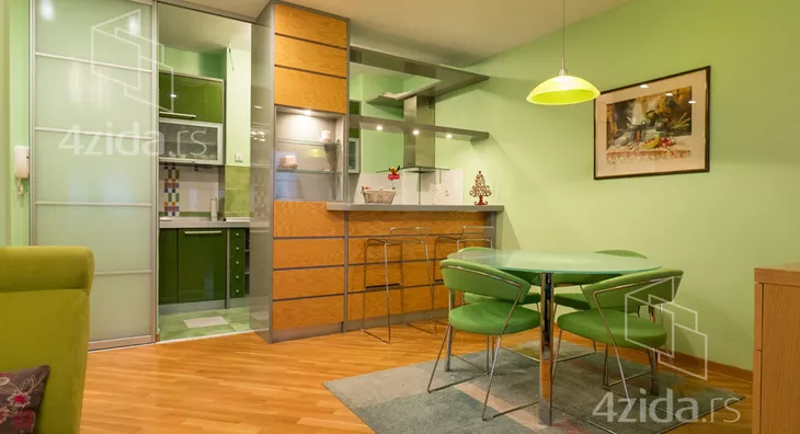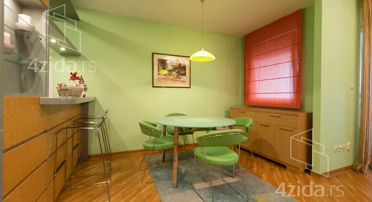 Izdaje se izuzetno atraktivan, lepo i kompletno opremljen dvosoban stan na šestom spratu odlično održavane zgrade u blizini Arene, restorana Novak, marketi, škola, vrtići, parkovi za decu i veliki izbor GSP linija ka svim delovima grada. Odlična povezanost sa auto putem, a nedaleko je i železnička stanica Novi Beograd. Sunčan, svetao, prelep otvoren pogled. Oko zgrade veliki parking (za stanare bloka sa mesečnom pretplatom). Odmah useljivo.