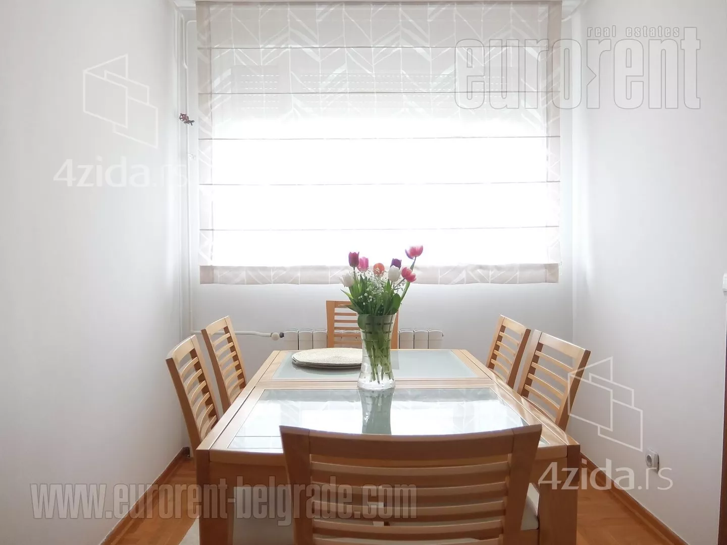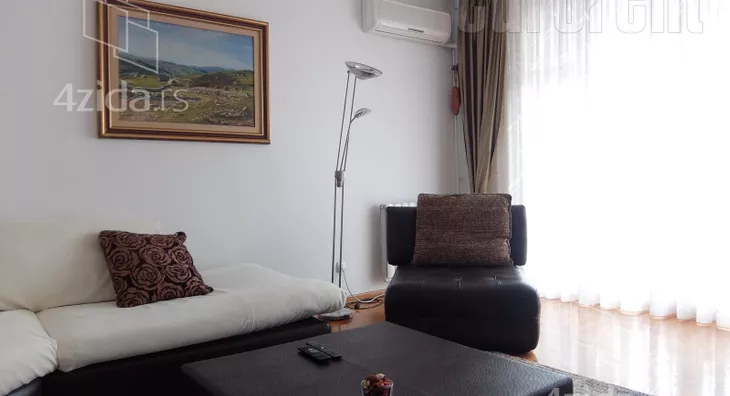 Komforan stan, smešten preko puta Arene nadomak auto-puta. Zgrada novije gradnje, odlično održavana, sa liftom i garažom u zgradi. Stan se nalazi na poslednjem spratu odakle se pruža pogled na Arenu. Iz ulaznog dela stana je omogućen pristup svim prostorijama. Dnevna soba je spojena sa trpezarijom i kuhinjom i ima izlaz na komfornu terasu. Kuhinja poseduje sve potrebne elemente, ostavu i malu zastakljenu terasu. Na raspolaganju su i dve spavaće sobe od kojih je jedna opremljena bračnim ležajem a druga singl krevetom i radnim stolom. Kupatilo je lepo uređeno, opremljeno kadom. Stan je opremljen kombinacijom modernog i klasičnog dobro održavanog nameštaja. Uz doplatu se može zakupiti garažno mesto. Idealan za porodicu ili mlađi par.