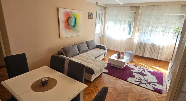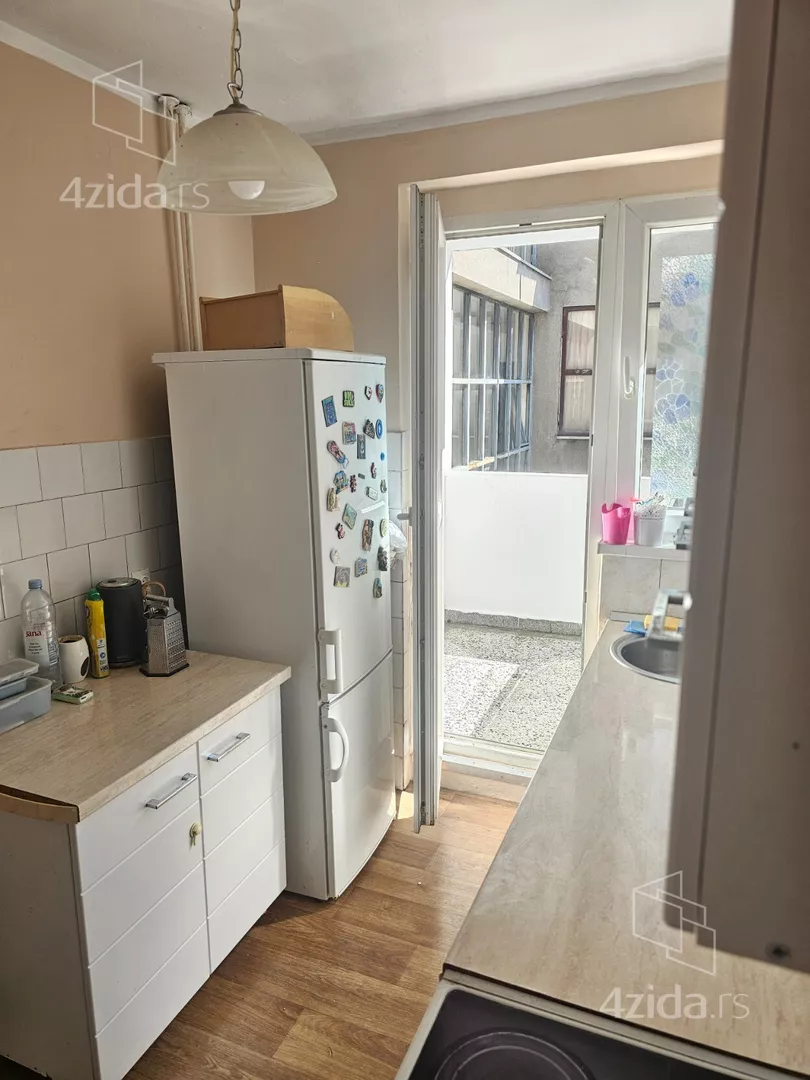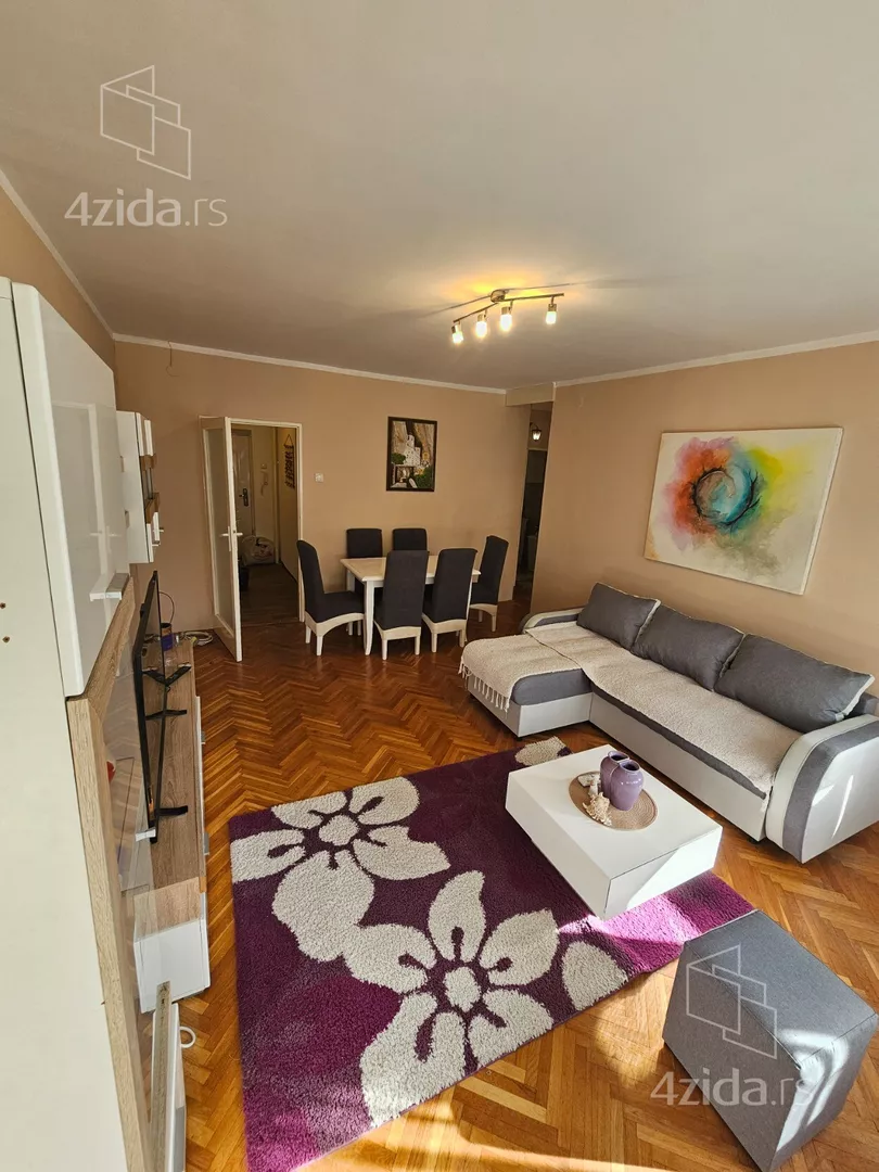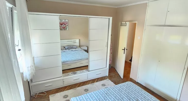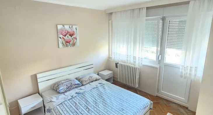 - Opremljenost: Namešteno - TV, klima, veš mašina, kuhinjski elementi, frižider, zamrzivač, šporet, rerna, ležaj, plakar, ugradni plakar