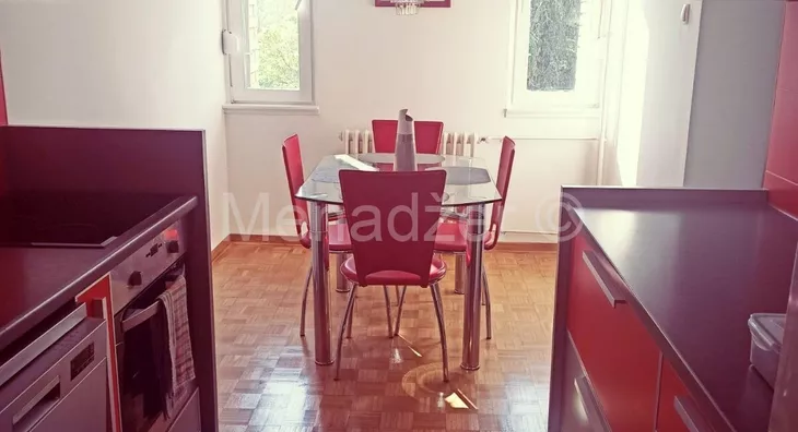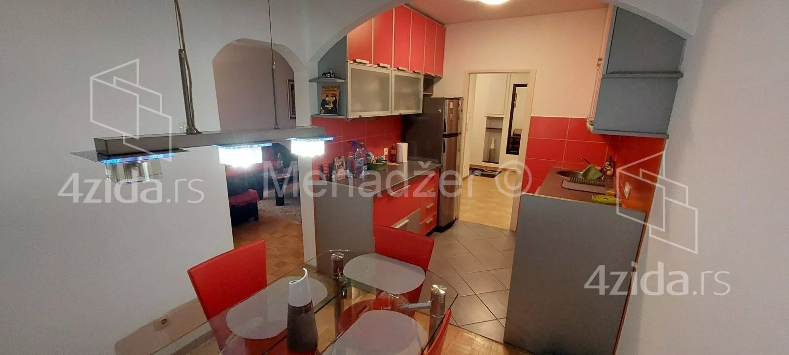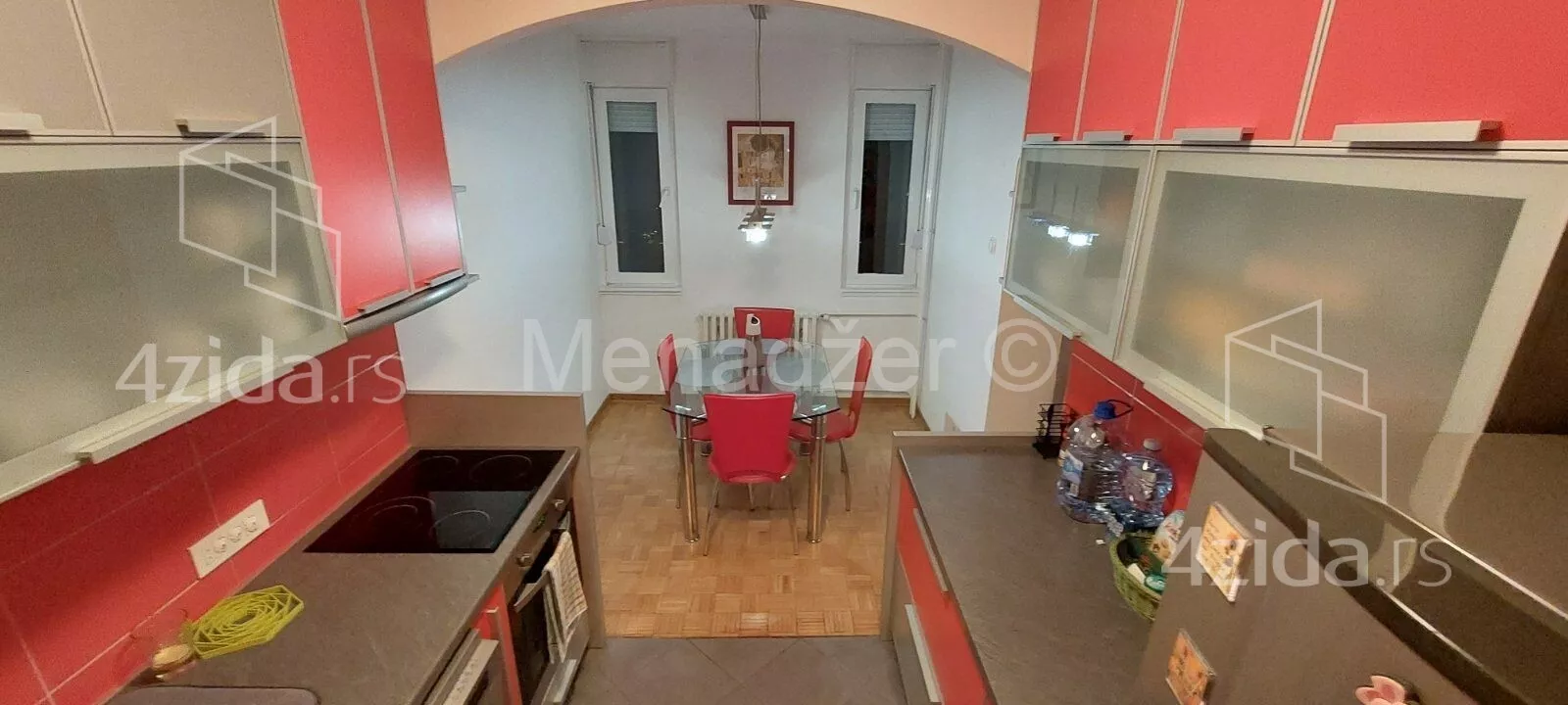 Ponuda najma lux jako komfornog, potpuno namestenog, velikog trosobnog stana, sjajnog rasporeda, sa dva mokra cvora, 2 lodje, u novijoj zgradi, od fasdne cigle, izuzetnoj lokaciji, u neposrednoj blizini svih mogucih infrastrkukturnih objekata za sirok dijapazon zakupaca, kako studenanta -blizina vise fakuleteta, Studenjaka, sprortskih sadrtaja, preko porodica sa sa decom, jer su tu ublizini skole, vrtici, parkovi sa igraonicama za decu, do zaopsenih parova, zbog blizine velikog broja predstavnistva svetskih i domacih firmi. posebno treba naglasiti blzinu aeredroma, za strane drzavljane i poslovne ljude. Osim spmenutih sadrzaja, imamo nekoliko soping molova, trznih centara, autoput koji povezuje ovaj deo sa svim delovima grada, I svi moguci ostali sadrzaji za kvalitetan zivot urbane porodice . Sama zgrada je novijeg datuma, natprosecno cista, uredna, sa sifrovanim interfonom, Slobodnih parking mesta, lokalnim trgovinama... Stan je lux sredjen i nameseten, Ima 84m2 i sve prostorije su velike i komforne sa sve namene, Trosobsn po srukturi na savrsenom 4. spratu. Od prostorija ima ulazni hodnik, gostinski wc, veliki dnevni boravak, trpezarija, odvojena od kuhinje, kuhinja dvostrana, veliki lodja, dalje niz godnik se nalazi posebno prostrija za veseraj sa masinom za pranje, prostranim kupatilom, jos jednom manjom lodjom, spavacim sobama lepo uredjene, lepe kvadrature, Kuhinja namstena, Stan je takodje Kompletno opremljen sa svim pokucstvom. Suncan svetao stan, miran, bez buke, za boravak zakupaca sa visokim kriterijimima zivljenja. Najtoplija preporuka, Mescni zakup 900e+ depozit+režije. Agencijska provizija 50% jedne mesecne kirije