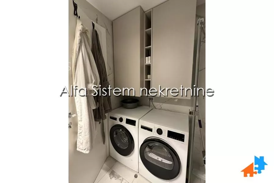 Stan je nov, opremeljen sa svim stvarima i aparatima, vase je jedino da donesete licne stvari. Kuhinja je u potpunosti opremljena sa Bosch tehnikom, kao masina za pranje i susenje vesa.