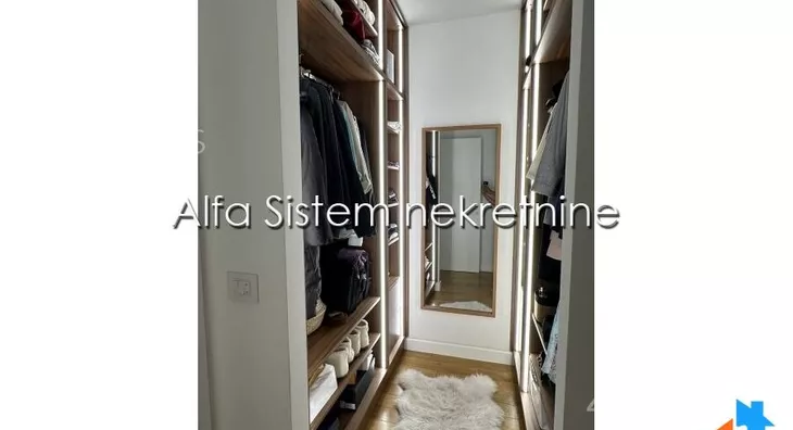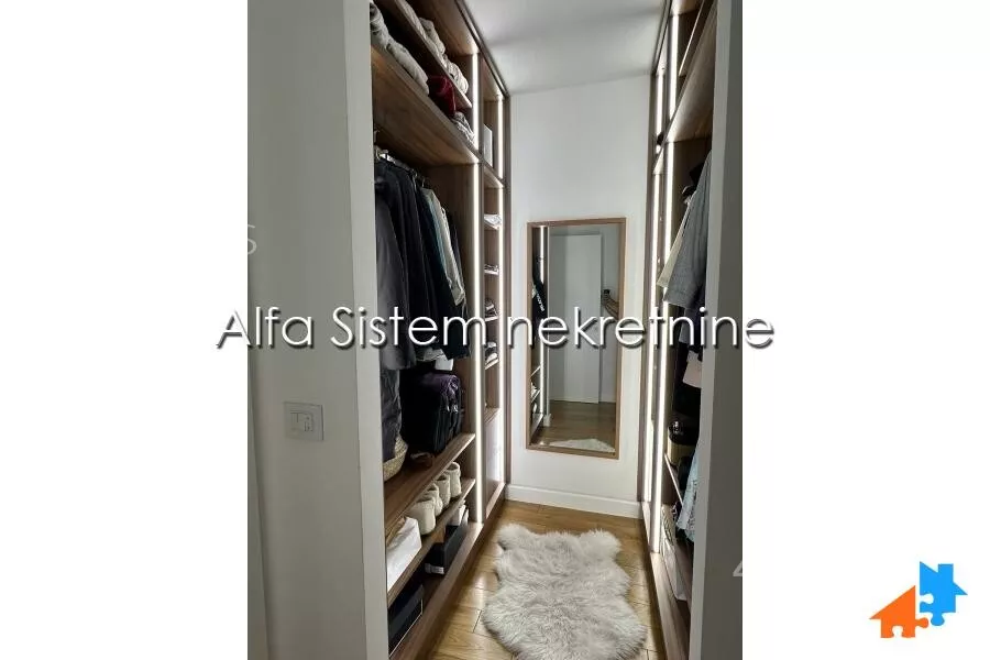 Stan se sastoji od 2 spavace sobe i garderobera, 2 kupatila, velikog dnevnog boravka, kuhinje i balkona.