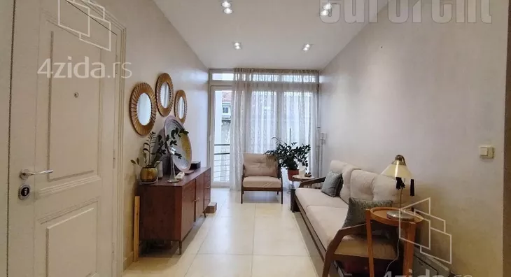Izuzetno atraktivan stan, apartmantskog tipa, smešten u mirnoj ulici nadomak Botaničke bašte. Prometna lokacija, odakle se lako stiže do svih delova grada, a na par minuta peške do Skadarlije. Zgrada je starije gradnje, sa liftom, lepo održavana, a stan je na četvrtom spratu i dvostrano je orjentisan, kompletno renoviran. Antre vodi ka prostranom dnevnom boravku/trpezariji odakle se pristupa svim ostalim prostorijama. U nastavku je prostor sa garniturom za sedenje i poglednm ka unutrašnjem dvorištu zgrade. S jedne strane je drugi ulaz u stan, a sa druge spavaća soba sa kupatilom. Kuhinja je izdvojena i kompletno opremljena tehnikom i elementima vrhunskog kvaliteta, sa dodatnom ostavom. Sa druge strane, okrenuta ka ulici je velika spavaća soba sa bračnim ležajem i kupatilo sa đakuzi kadom. Dnevni boravak je takođe u ovom delu, ali se može pretvoriti i u treću spavaću sobu. Ovaj salonac ima izuzetan enterijer sa dosta detalja, unikatnih komada nameštaja koji dodatno doprinose potpunoj udobnosti. Za budućeg zakupca postoji i parking mesto u garaži u obližnjoj zgradi, uz doplatu. Odličan stan, pogodan za život modernog čoveka.