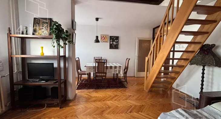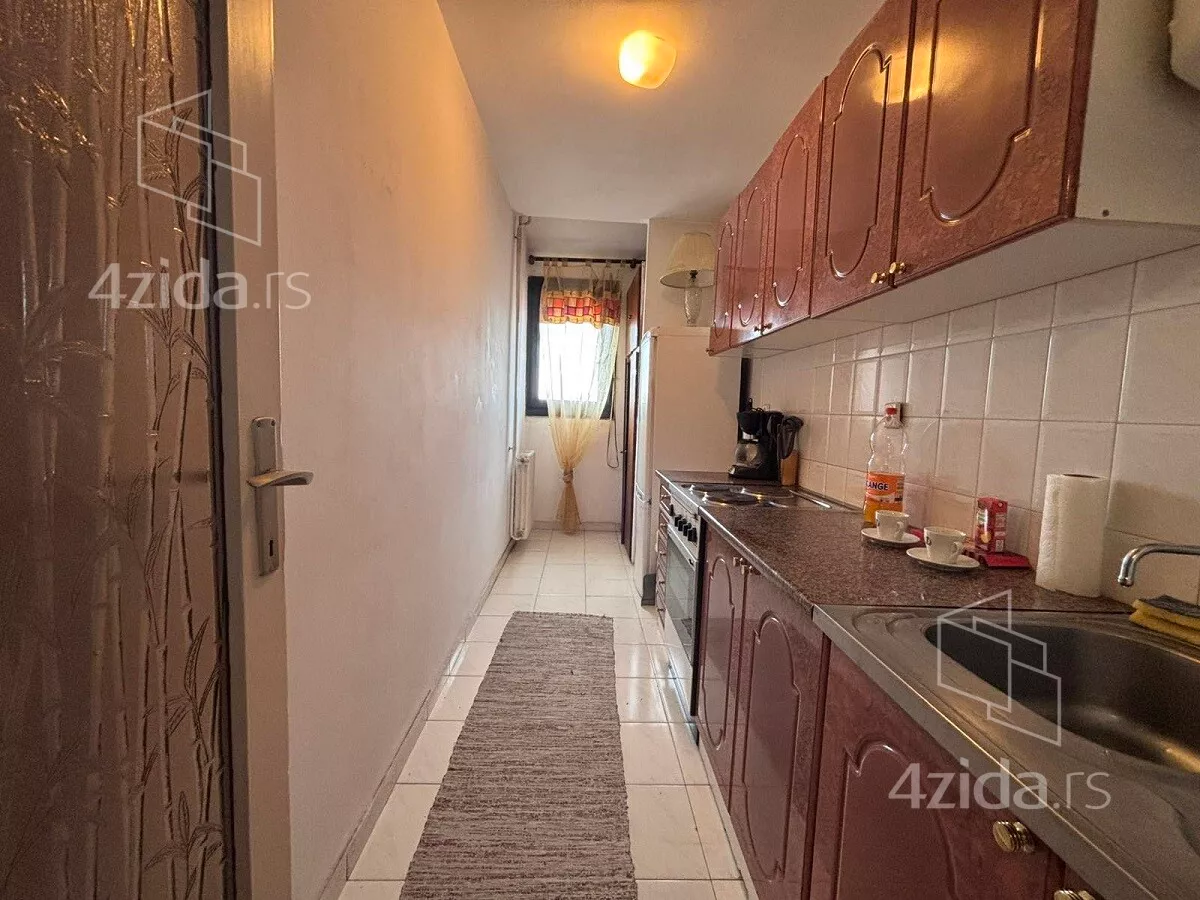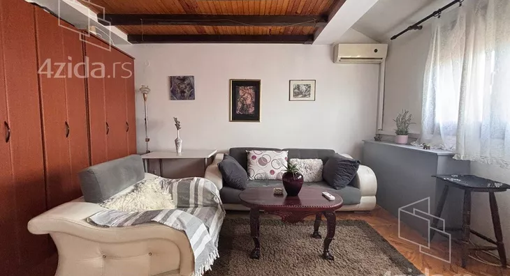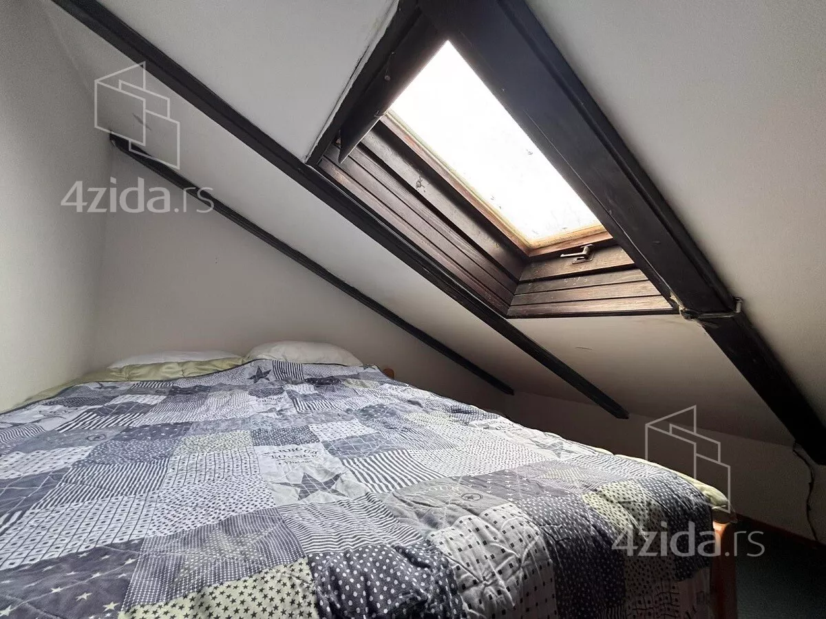 Stan je izuzetno svetao, sa panoramskim pogledom na grad. Nalazi se u održavanoj zgradi sa dva lifta. Površina donjeg nivoa je 47m², a galerije 13m². Sastoji se od hodnika, dnevnog boravka, odvojene kuhinje, kupatila i spavaće sobe na galeriji. Grejanje je na struju – klima i Cini radijatori.