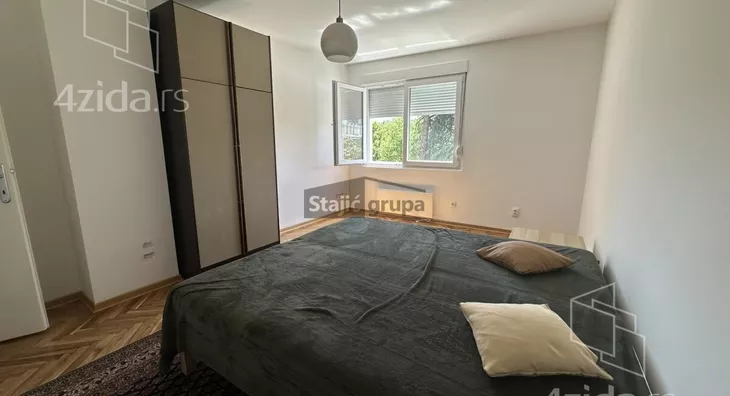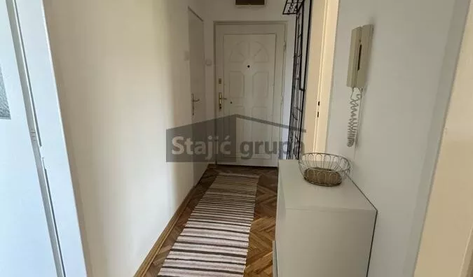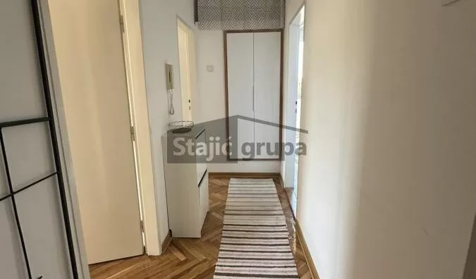 Prostran, namešten stan, idealan za život. Autobuska stanica 25,25P se nalazi ispred zgrade. U blizini se nalaze autobuske linije 18,39 i 50. Univezitet Singidunum se nalazi na 5 minuta peške. Uknjižena grejna površina 55m2, korisna površina sa terasom 60m2.Obavezan depozit u visini jedne kirije.
