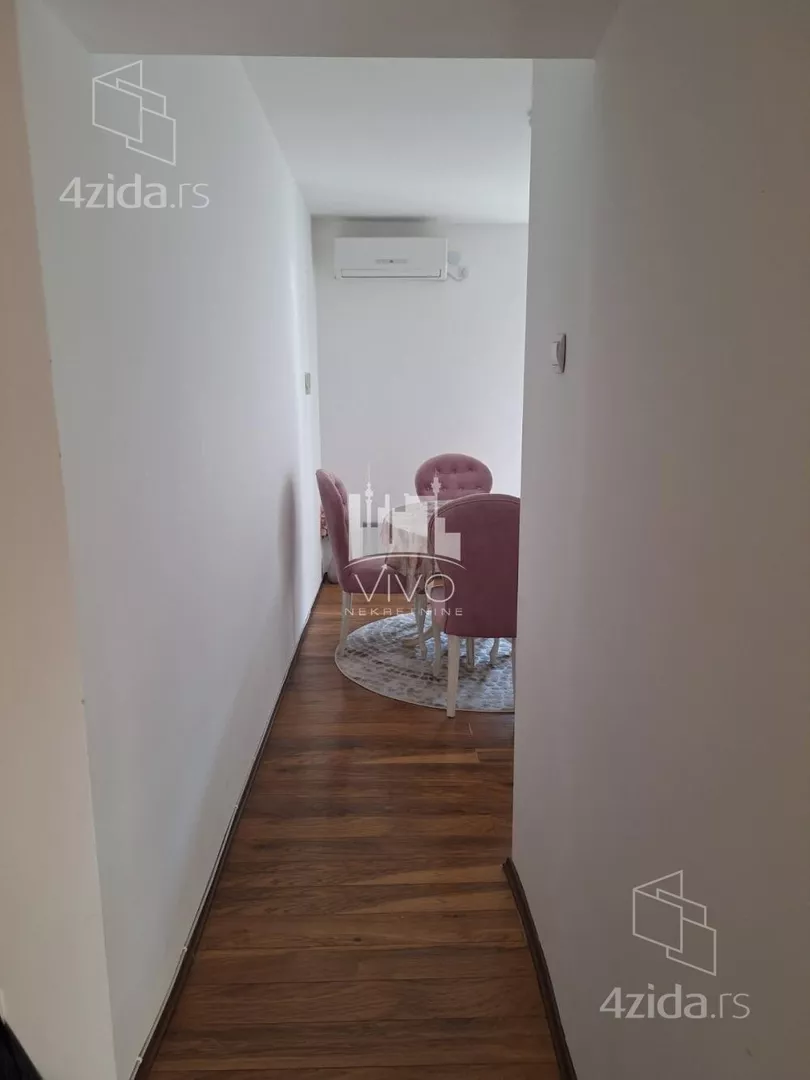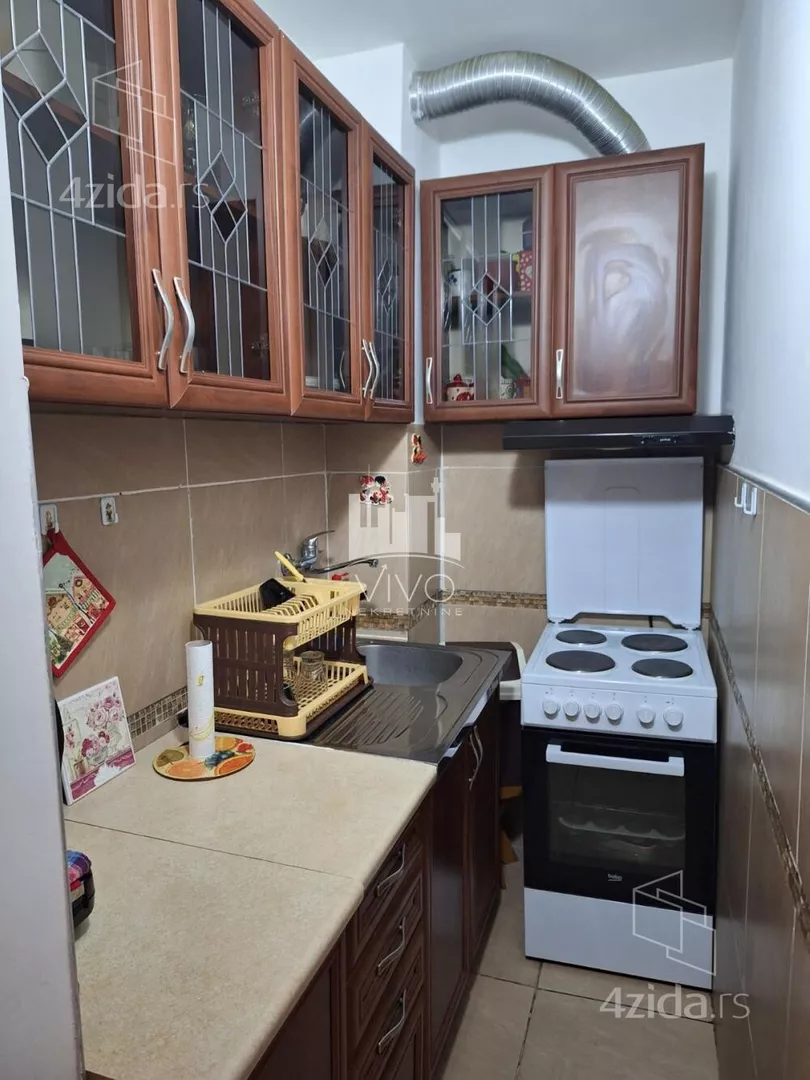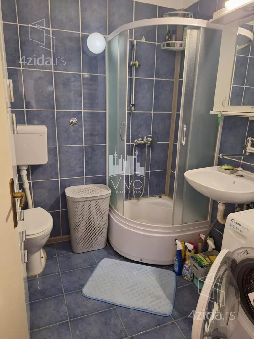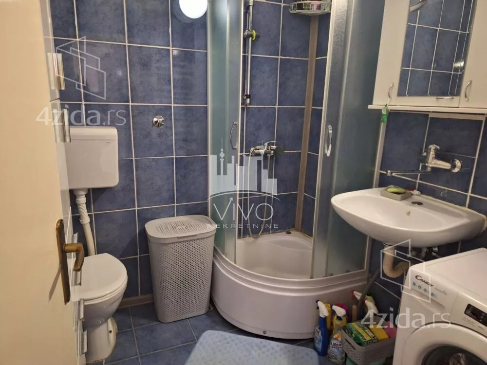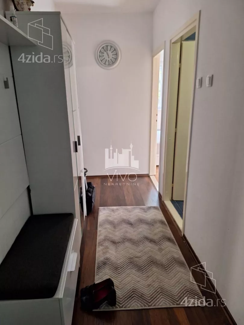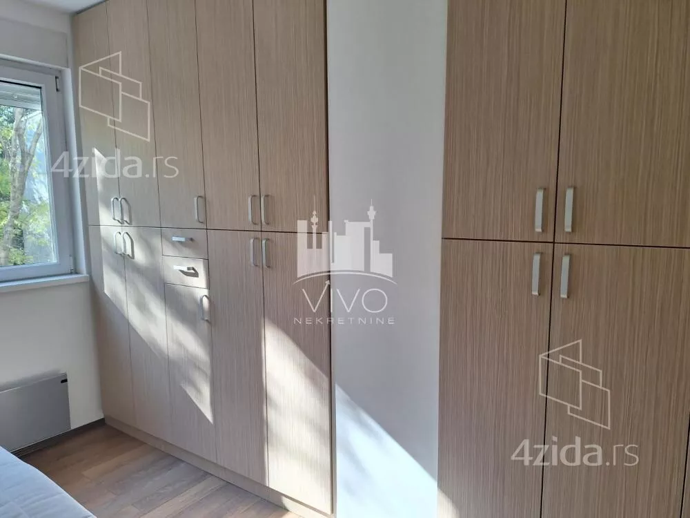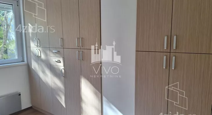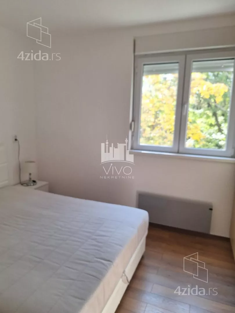 Dugoročno se izdaje renoviran, kompletno opremljen jednosoban stan, adaptiran u jednoiposoban. Stan je funkcionalnog rasporeda. Iz predsoblja se ulazi u sve prostorije, dnevna soba, odvojena kuhinja, trpezarija sa izlaskom na zastakljenu lođu, spavaća soba, kupatilo. Uredna zgrada smeštena u parkovskom okruženju. Niski režijski troškovi, grejanje-norveški radijatori, infostan 3.500 RSD. Blizina linija gradskog prevoza, 26,25,25P,18. Nisu dozvoljeni kućni ljubimci. Mesečno plaćanje, depozit u visini mesečne kirije. Agencijska provizija 50%