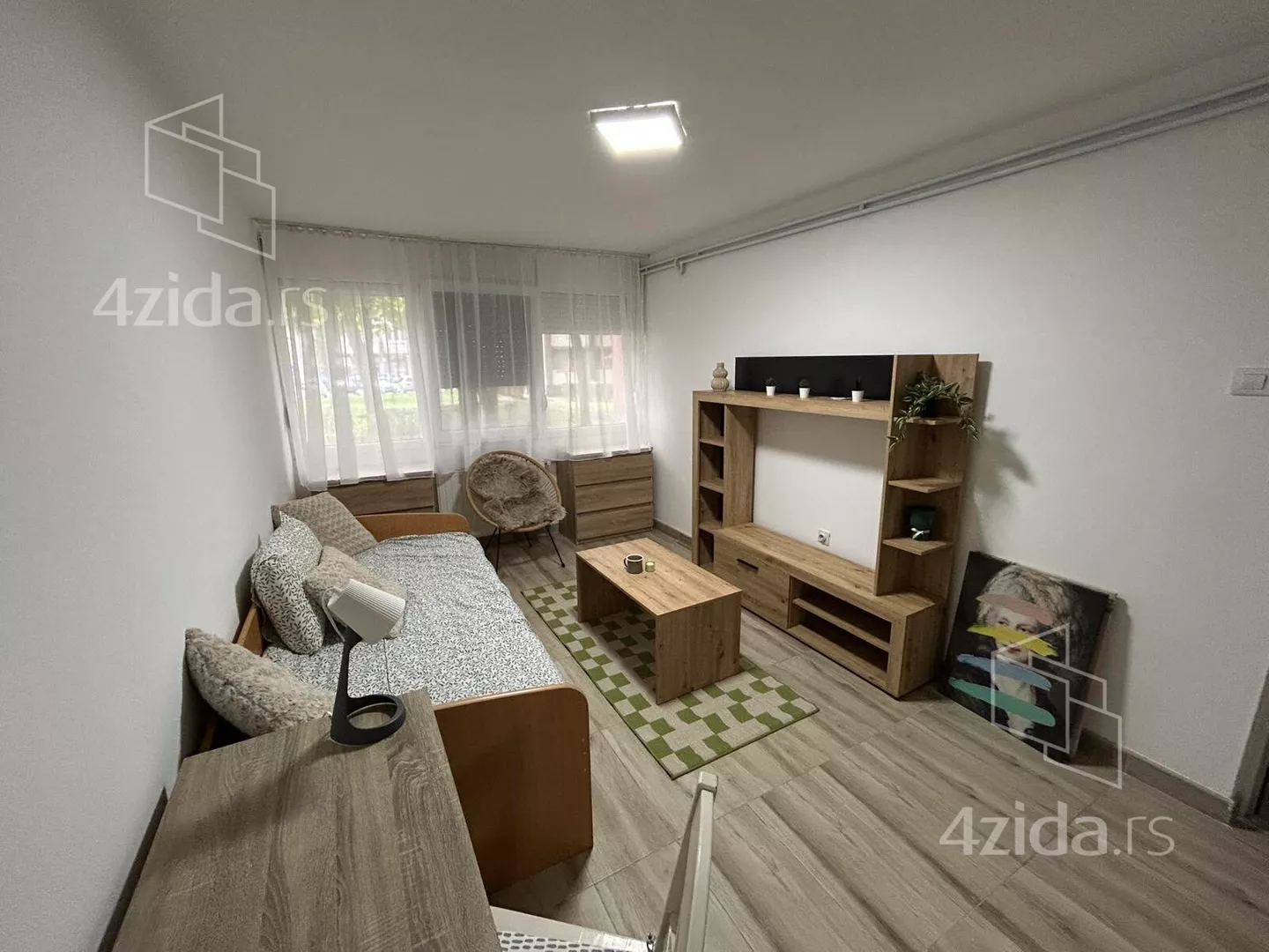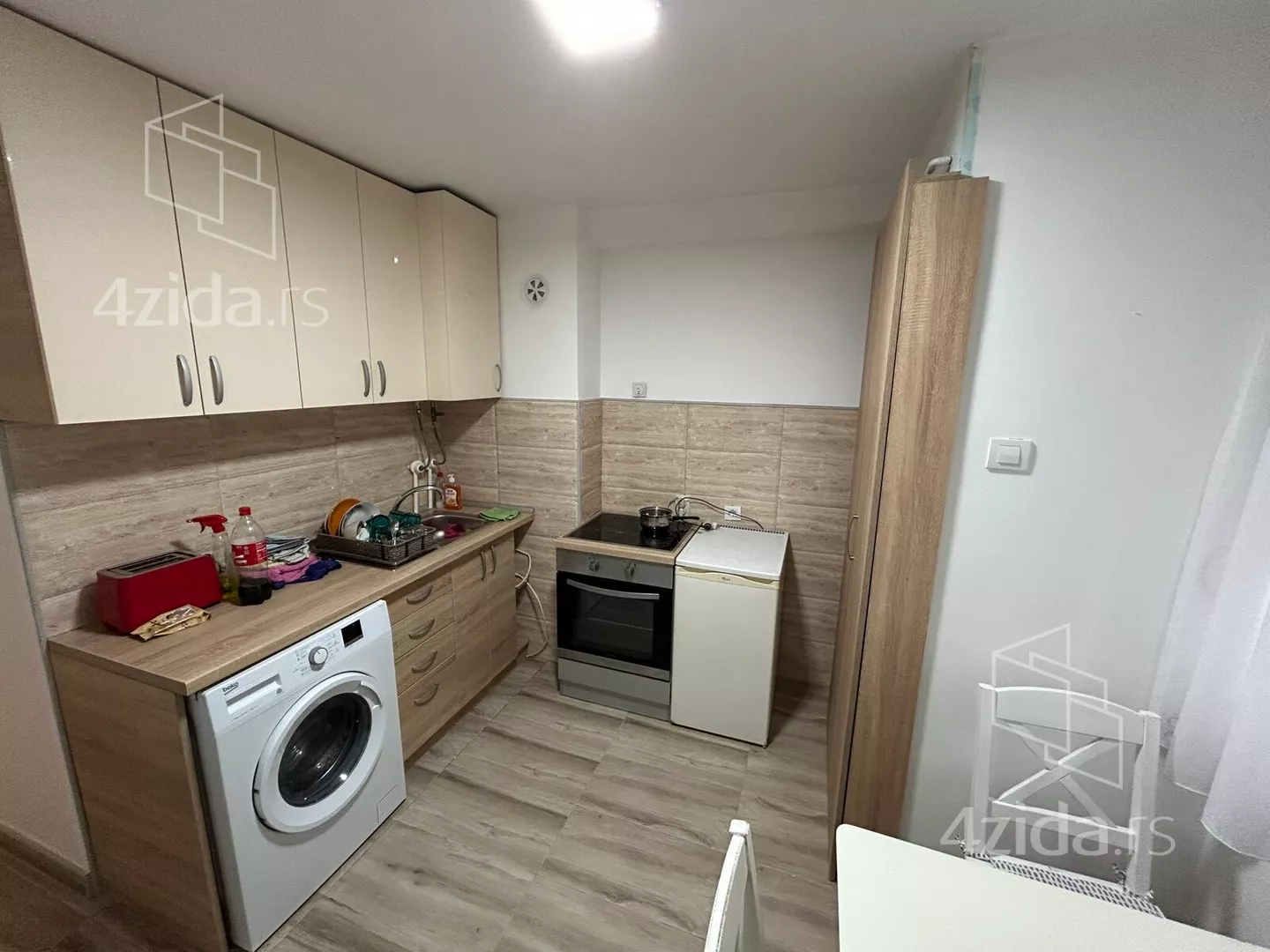 - Opremljenost: Namešteno - TV, ventilacija, veš mašina, kuhinjski elementi, frižider, zamrzivač, šporet, rerna, ležaj, plakar, kancelarijski nameštaj