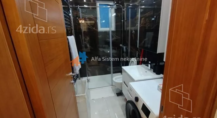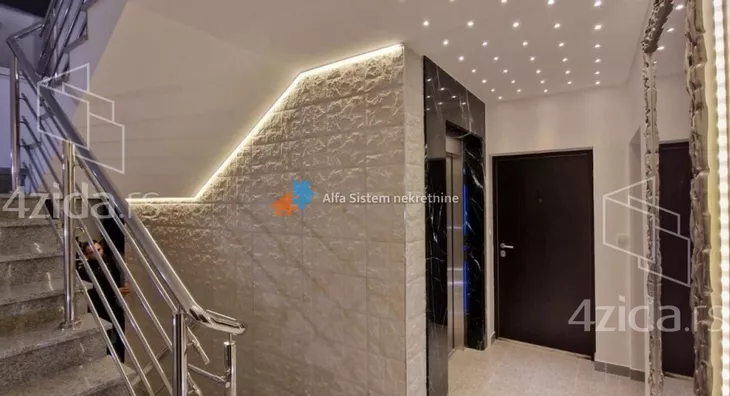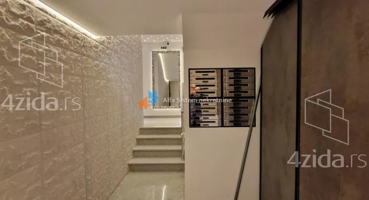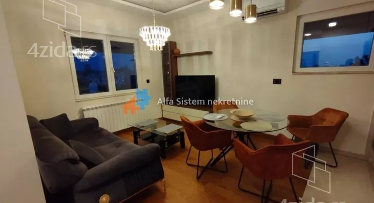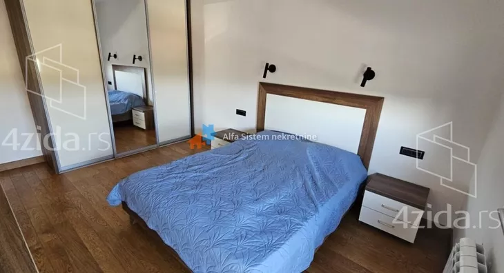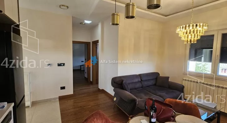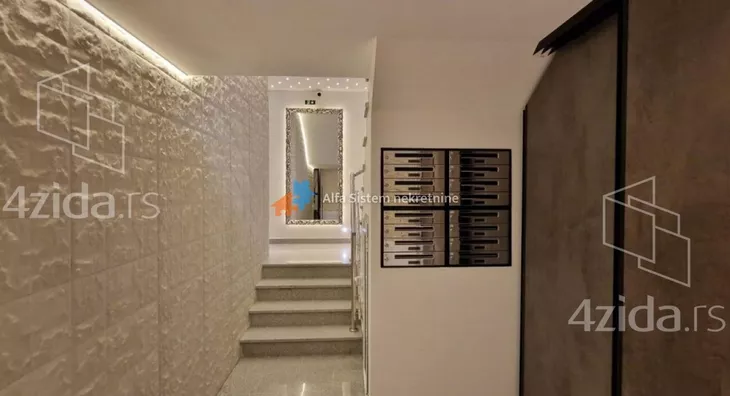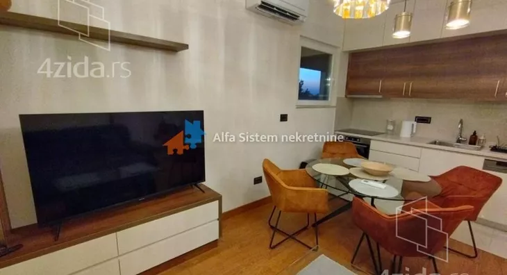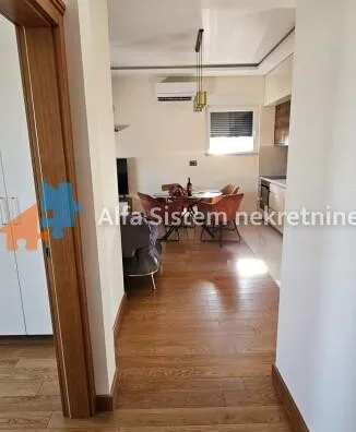 Opremljen novim, kvalitetnim nameštajem i uređajima, inverter klimom (mogućnost grejanja uz nisku potrošnju struje), interfonom i sigurnosnim - blindiranim vratima.