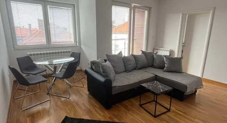 - Opremljenost: Namešteno - internet, TV, klima, veš mašina, kuhinjski elementi, frižider, šporet, rerna, ležaj, plakar