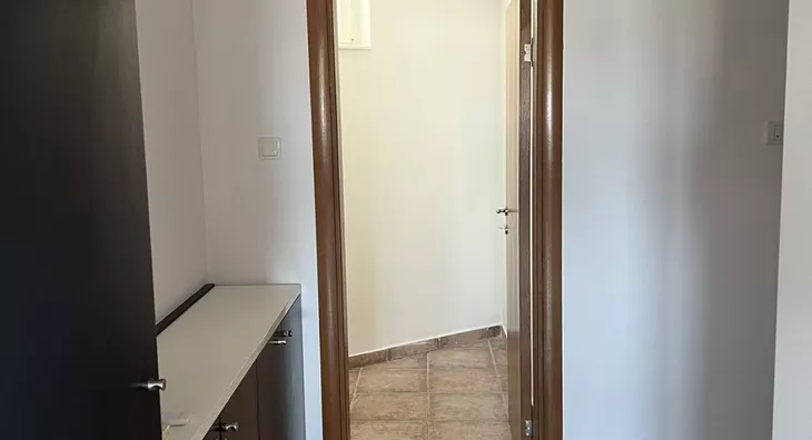 The apartment is partially furnished (with kitchen elements and wardrobes in the rooms).