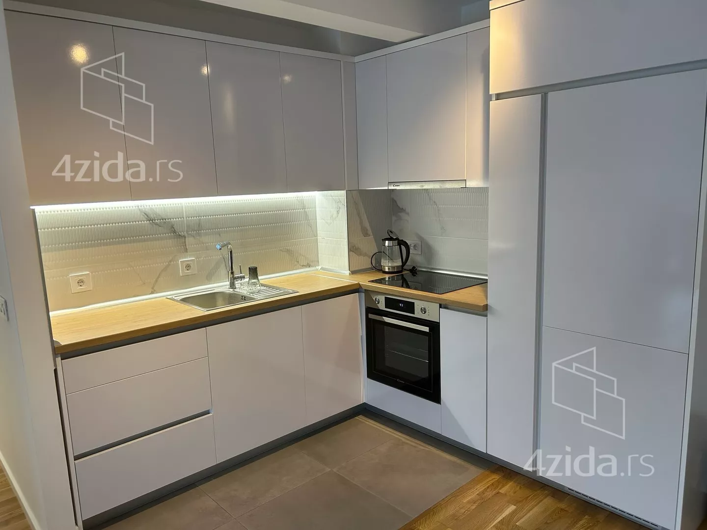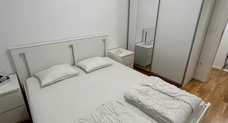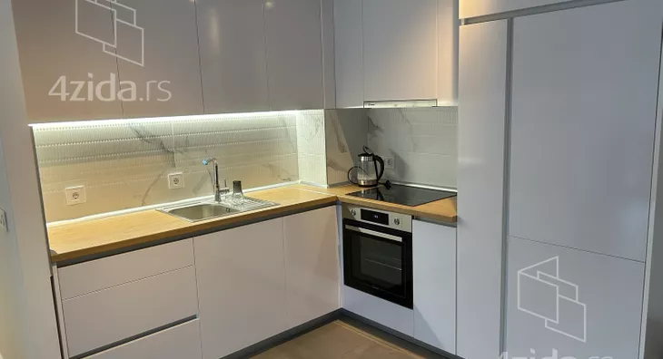 - Opremljenost: Namešteno - internet, TV, klima, veš mašina, kuhinjski elementi, sudo mašina, frižider, zamrzivač, šporet, rerna, plakar, ugradni plakar