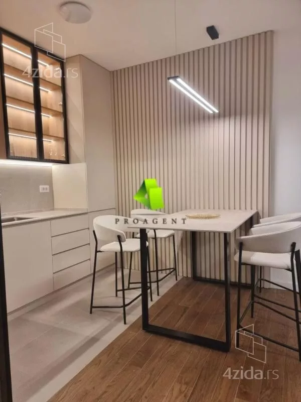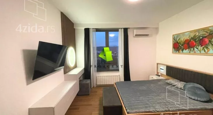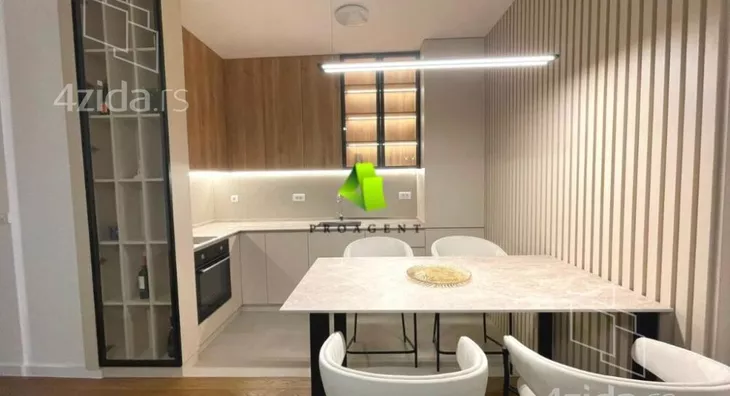 Izdaje se lux opremljen stan u kompleksu Planet Rezident. Površine je 56m2, nalazi se na X spratu stamebene zgrade sa 3 lifta i prelepim pogledom. Sastoji se od ulaznog hodnika, dnevnog boravka sa kuhinjom i trpezarijom, spavaće sobe, kupatila i terase. Stan je opremljen novim i kvalitetnim nameštajem i belom tehnikom. Uz stan ide i parking mesto koje se izdvaja od ostalih jer ima svoj električni punjač za električne automobile. Kompleks je osmišljen sa vizijom idealnog stanovanja kako bi unapredio sve aspekte udobnog života. Pored stambenih jedinica pruža i druge pogodnosti kao što su: zelene površine, sadržaje za decu a stanarima su po povoljnijim cenama na raspolaganju: SPA centar sa bazenom, saunom, prostorijama za masažu, kao i vrhunski opremljenom teretanom. Vrhunski kvalitet materijala koji je korišćen u izgradnji, izolaciji enterijera i stolariji, kao i svaki detalj stambenog prostora, prilagođeni su savremenim potrebama kako porodica, tako i pojedinaca. Aluminijum prozori visokog kvaliteta sa troslojnim termo-staklom, višeslojni parket vrhunskog kvaliteta, kupatilo/kuhinja - keramika premium kvalitet.