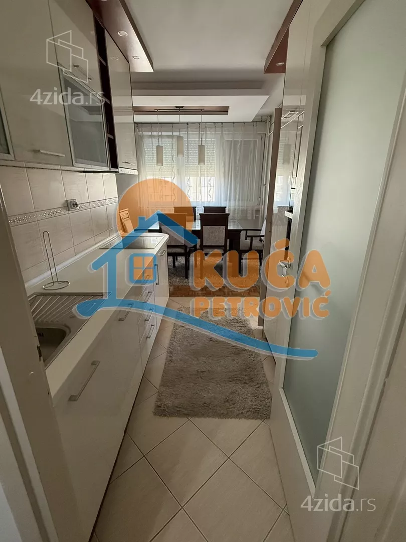 Izdaje se stan površine 51m2 na petom spratu u zgradi sa liftom. Sastoji se od ulaznog hodnika, trpezarije sa kuhinjom, dnevne sobe, dve spavaće sobe, kupatila i zatvorene terase. Grejanje je centralno. Komplet je opremljen nameštajem i svom potrebnom belom tehnikom. Lepo je osvetljen i orijentisan. Izdaje se ozbiljnim zakupcima na duži vremenski period. Obavezan depozit u visini jedne mesečne kirije. Agencijska usluga je 50% od prve mesečne zakupnine. Za više informacija javite se na telefon agencije. Ovo je samo deo naše ponude.Naša preporuka Vaš izbor! Ovu kao i druge nekretnine možete pogledati na našem sajtu. Čekamo Vas!
