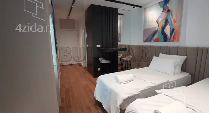 Izdaje se nov stan na Bulevaru Nemanjića, pored Delte u novom luksuznom kompleksu. Nalazi se na sedmom spratu, u novoj stambenoj zgradi, sa tri lifta. Stan je kompletno sređen i opremljen svim novim nameštajem i novim električnim uređajima i do sada neuseljavan. Površina stana je 30 m2. Sastoji se od ulaznog hodnika, dnevnog boravka, sa kuhinjom i kupatila. Poseduje i lepu terasu. Stan je lepo orjentisan i osvetljen, tako da ima puno dnevne svetlosti. Grejanje u stanu je centralno sa kalorimetrima, plaća se po potrošnji. Kompleks ima prelepo uređeno dvorište na prvom spratu, koje je na raspolaganju samo stanarima zgrade, i recepciju. Uz zakup stana ide i garažno mesto u podzemnoj garaži do koje ide lift. Zgrada se nalazi na pristupačnoj i atraktivnoj lokaciji, pa će zakupcima u neposrednom okruženju na raspolaganju biti svi objekti od značaja za svakodnevni život. Izdaje se ozbiljnim zakupcima na duži vremenski period. Obavezan depozit u visini jedne mesečne kirije. Agencijska usluga je 50% od prve mesečne zakupnine. Za više informacija javite se na telefon agencije. Ovo je samo deo naše ponude. Naša preporuka Vaš izbor! Ovu kao i druge nekretnine možete pogledati na našem sajtu. Čekamo Vas!