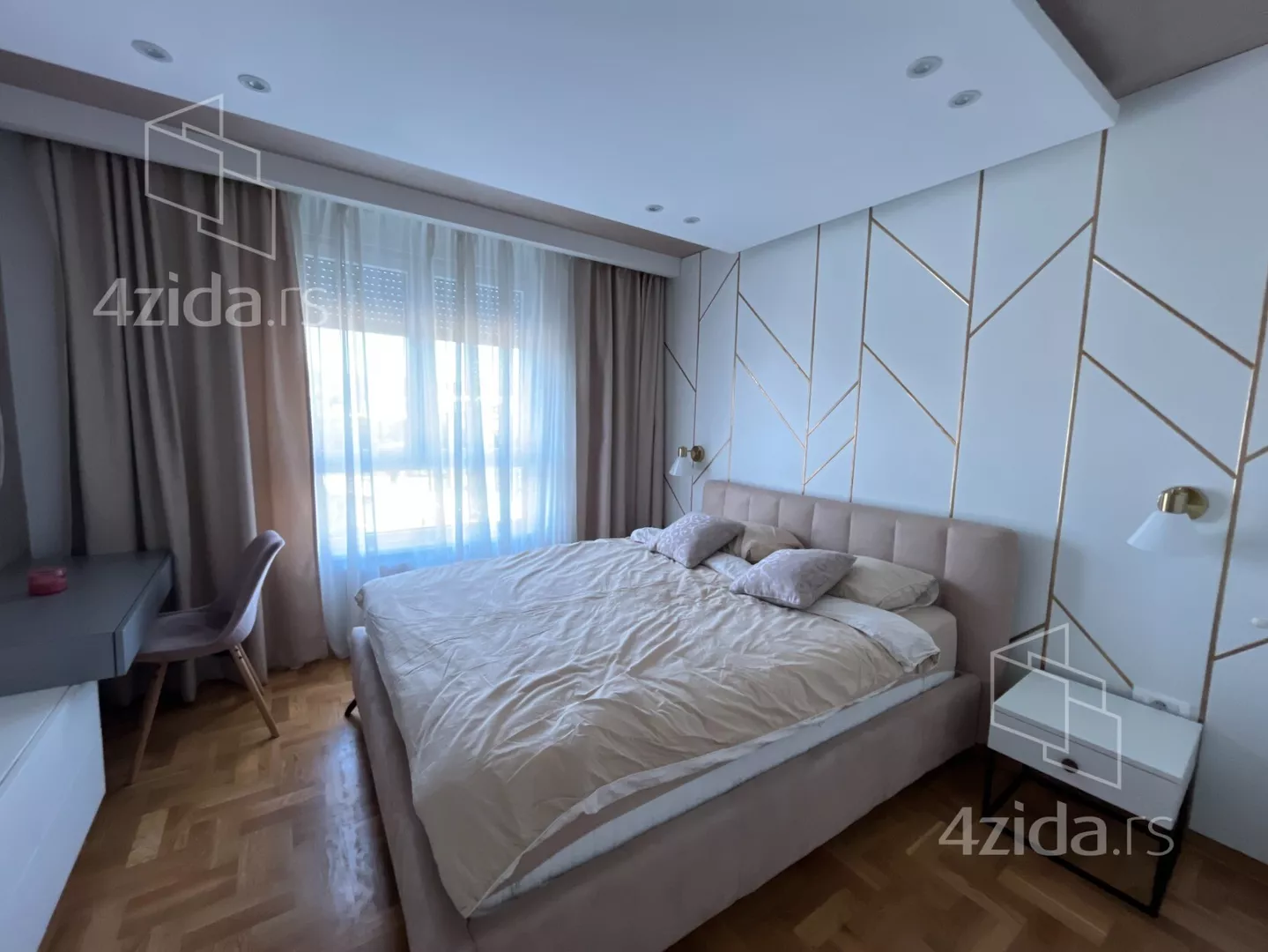 Stan je potpuno opremljen modernim i kvalitetnim nameštajem, kao i svim neophodnim tehničkim uređajima, što ga čini spremnim za udoban i komforan život. Sastoji se od ulaznog hodnika, prostranog dnevnog boravka sa trpezarijom i kuhinjom, dve spavaće sobe, kupatila, zasebnog WC-a i terase.