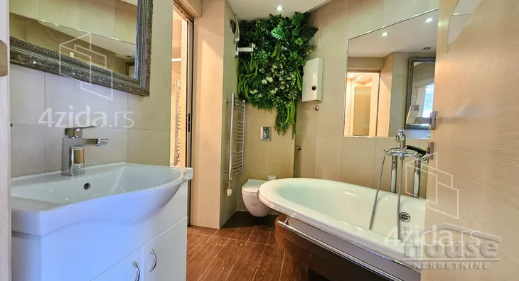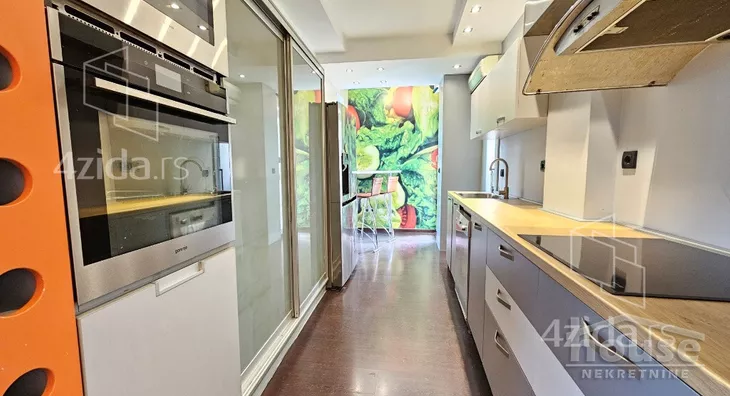 POTPUNO namešten i tehnički opremljen stan. U kuhinji su ugrađeni svi potrebni uređaji kao i prečistač za vodu, kao i u sudoperi drobilica za organski otpad. U stan se ulazi redovno iz hodnika zgrade ili posebnim liftom koji je samo za ovaj stan. Od opreme u stanu ima i fotelja za masažu. Cena 1500e+depozit+50% agencijska provizija od prve zakupnine, jednokratno. Za vise informacija