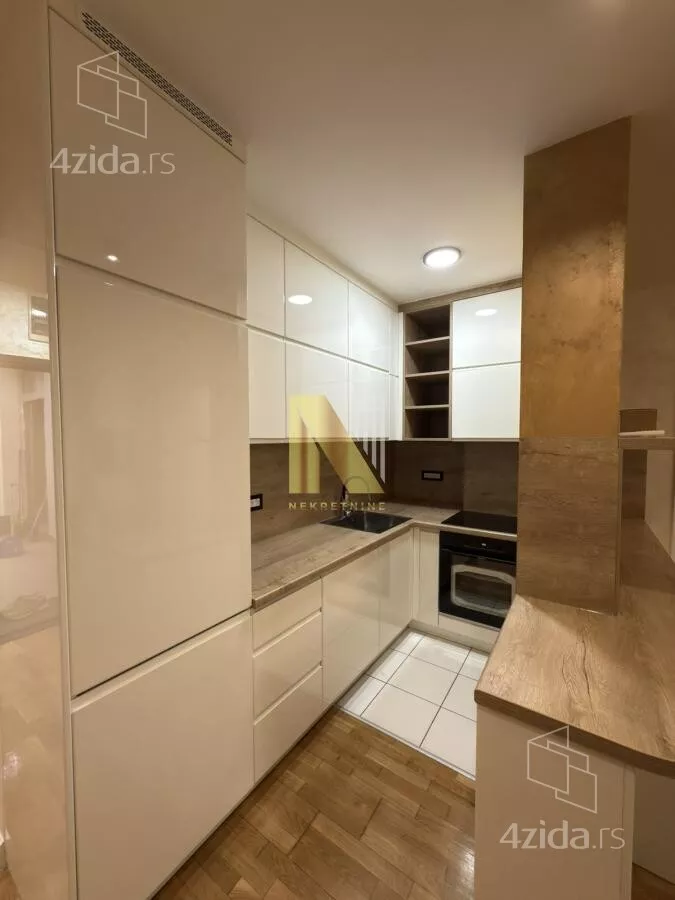 - Opremljenost: Namešteno - internet, interfon, TV, klima, veš mašina, sudo mašina, frižider, rerna, ležaj, plakar