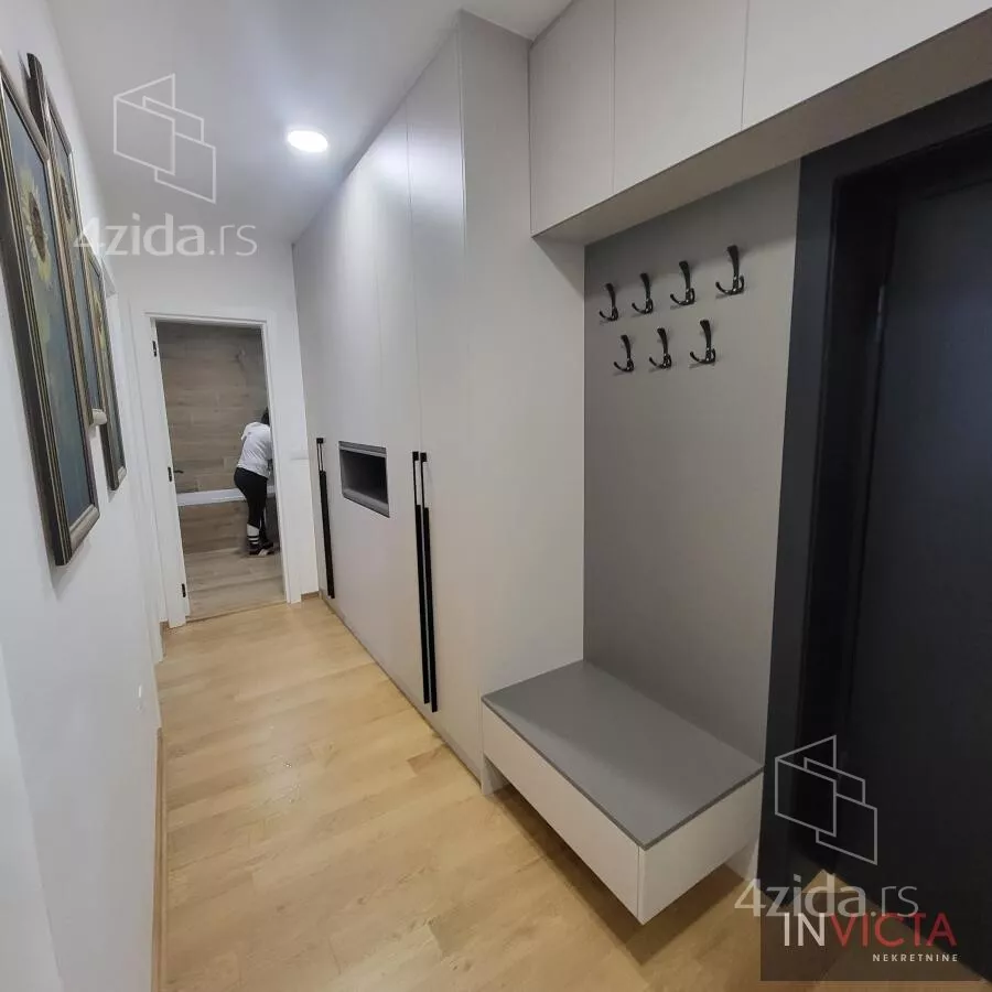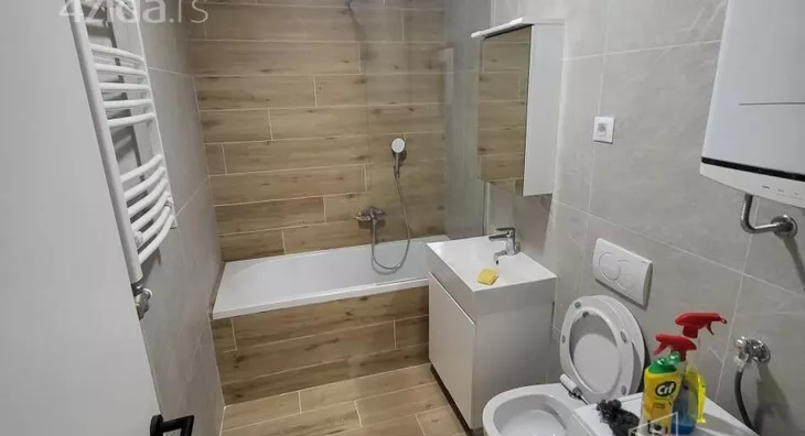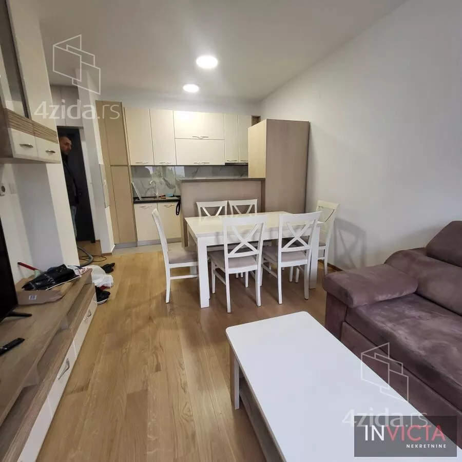 - Opremljenost: Namešteno - interfon, TV, klima, veš mašina, sudo mašina, frižider, rerna, ležaj, plakar, kanalizacija