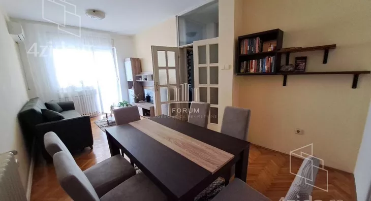 Fully furnished two-room apartment of 50m² for rent, located on the 5th floor (out of 6) in a building with an elevator. The apartment has a terrace and is available for move-in from July 15, 2025. Pets are not allowed. Monthly rent is €450. A deposit equal to one month's rent is required upon signing the lease. The agency fee is 50% of the first month's rent and is paid once. Excellent location near Futoška Market.