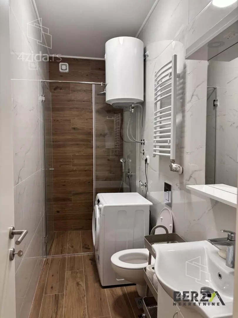 Izdaje se moderan stan na 3.spratu zgrade sa liftom nadomak Bulevara oslobođenja. Stan se sastoji od komfornog dnevnog boravka koji je spojen sa kuhinjom, spavaće sobe, kupatila i terase. Mogućnost doplate za parking mesto u iznosu od 60e mesečno.