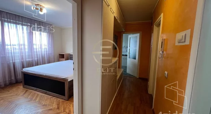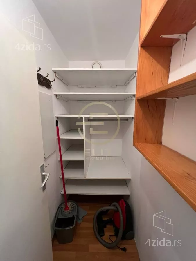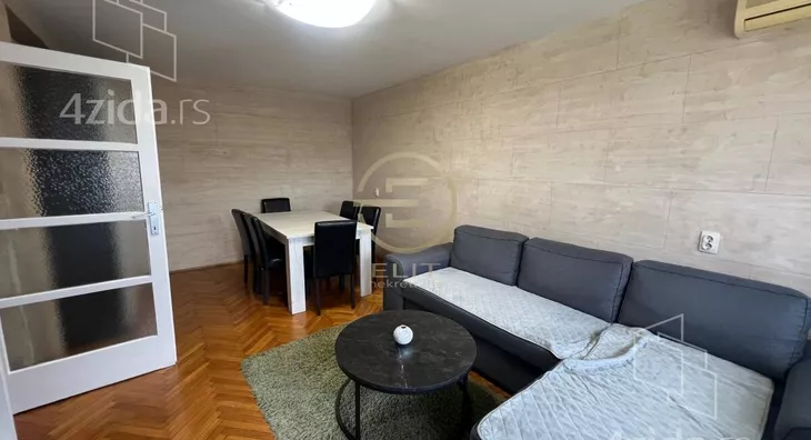 Izdaje se moderno renoviran i kompletno opremljen dvosoban stan, smešten na šestom spratu zgrade sa liftom. Stan je funkcionalnog rasporeda i veoma osvetljen, a sastoji se od dnevnog boravka povezanog sa trpezarijom, komforne spavaće sobe, kupatila, garderobera koji može služiti i kao ostava, hodnika koji vodi ka svakoj prostoriji i terase idealne za odmor.