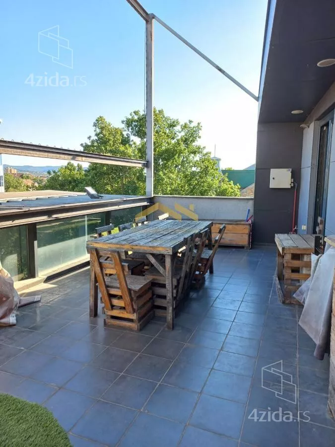 Stan je potpuno namešten i opremljen ugradnim plakarima, invertorskim klimama i ima veliku terasu koja pruža osećaj komfora i otvorenosti.