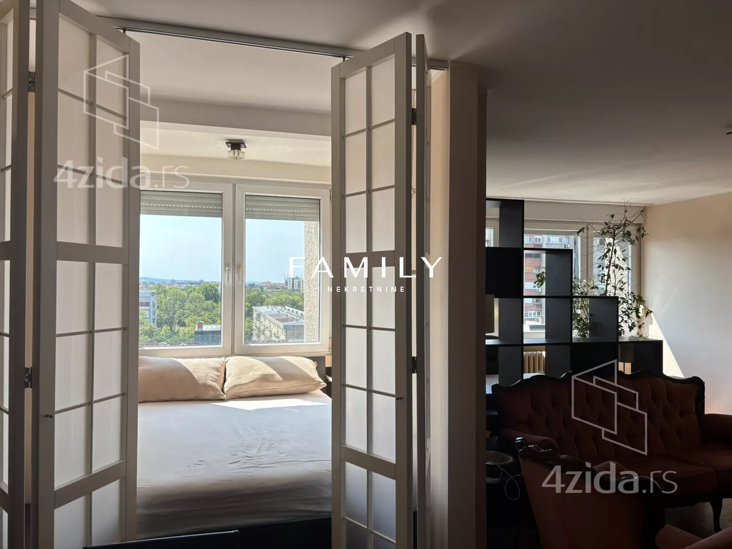 Izdaje se potpuno namešten jednoiposoban stan površine 43 m² na 9. spratu zgrade sa liftom, na atraktivnoj lokaciji – Bulevar oslobođenja.