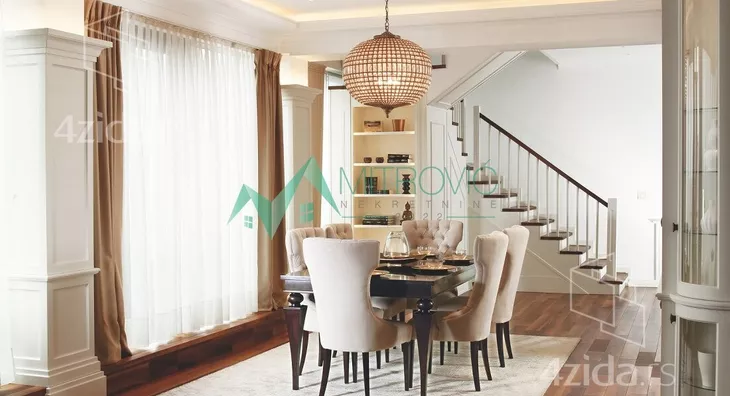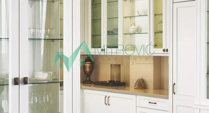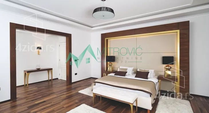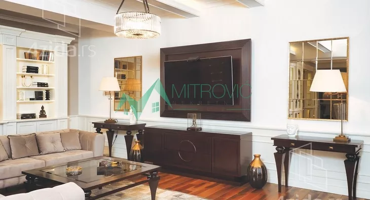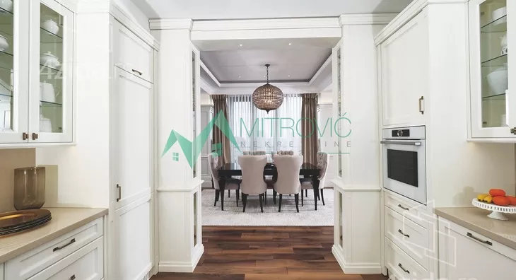 Luksuzan, veoma komforan šestosoban stan namešten novim, veoma kvalitetnim i modernim nameštajem. Nalazi se na najatraktivnijoj lokaciji u Novom Sadu. I ono što ovaj stambeni objekat čini posebnim, sem njegovog visokog kvaliteta je i pozicioniranje, ali i sam raspored prostorija. Zgrada u kojoj se nalazi je jedan od simbola grada, a ujedno se i nalazi u neposrednoj blizini strogog centra grada, više poslovnih banaka, škola i vrtića kao i državnih institucija, restorana i kompletnog sadržaja za normalno svakodnevno funkcionisanje. Ovaj stan čine dve etaže. Raspored prostorija donje etaže čine sledeće prostorije: komforan i svetao dnevni boravak sa trpezarijskim delom, odvojena i uvučena kuhinja, spavaća soba, radni kabinet, kupatilo sa džakuzi kadom, toalet, ostava ni velika lepa terasa koja se prostire duž cele donje etaže stana sa prelepim pogledom na grad. Gornju etažu čine prostorije sledećeg rasporeda: veliki deganžman, prostrana spavaća soba sa garderoberom, kupatilo sa džakuzi kadom i tušem, druga spavaća soba sa garderoberom, vešeraj, kupatilo i jedna soba bez posebne namene.