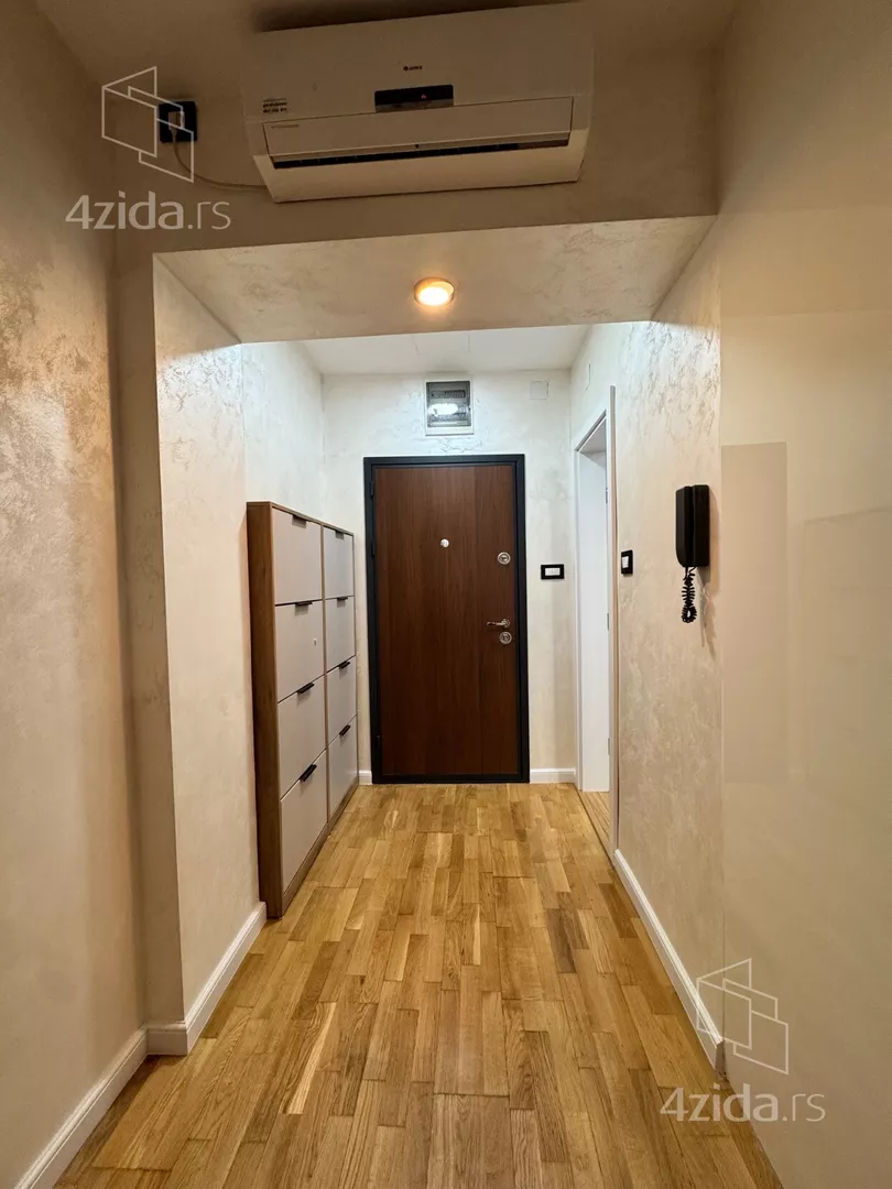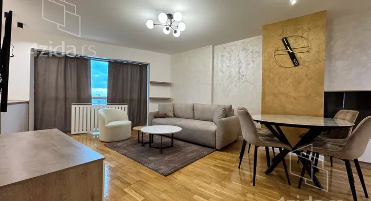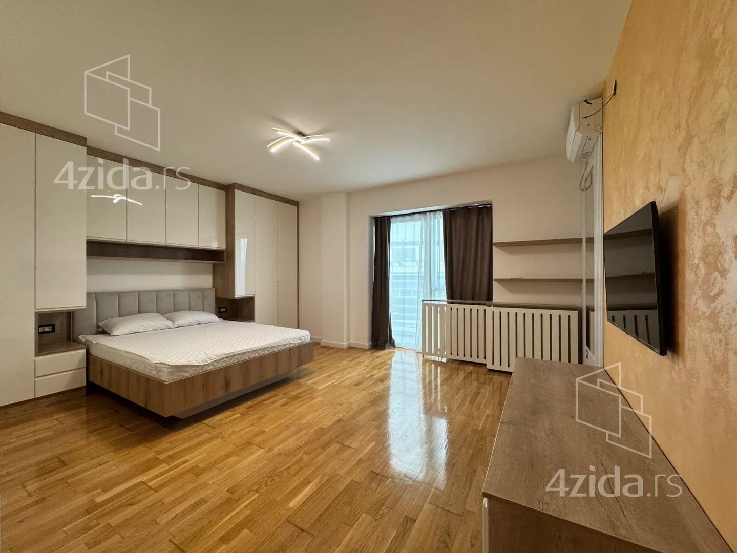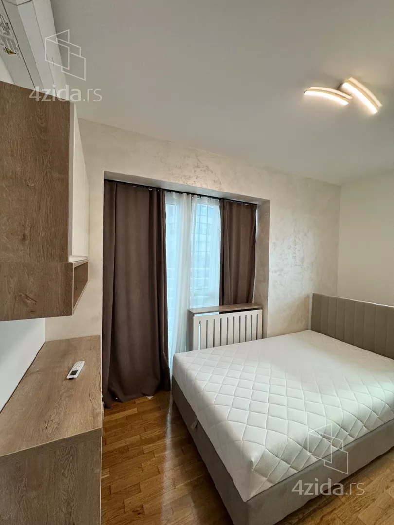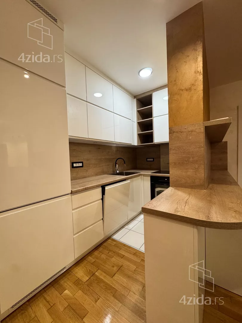 - Opremljenost: Namešteno - TV, klima, veš mašina, kuhinjski elementi, sudo mašina, frižider, zamrzivač, šporet, rerna, ležaj, plakar, ugradni plakar