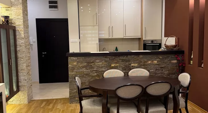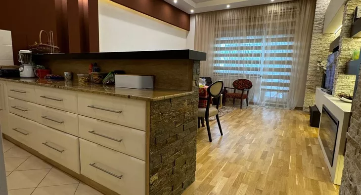 Kompletno ,kvalitetno namešten stan sa svom kućnom opremom,bela tehnika ,aparati,escajg,posuđe podteljina,svaka soba ima ugrađen klima uređaj.Zgrada ima obezpbeđenje 24h pp i nalazi se na odličnoj lokaciji u blizini centra i Futoške pijace.