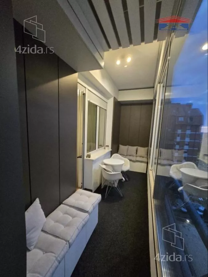 Izdaje se luksuzno opremljen trosoban stan na TOP lokaciji, na Bulevaru Oslobođenja. Stan se sastoji iz dnevne sobe sa kuhinjom, dve spavaće sobe, garderober sobe, dva kupatila, hodnika i terase. Nalazi se na petom spratu u zgradi sa liftom. Stan se izdaje sa parking mestom u garaži. Odmah useljivo.