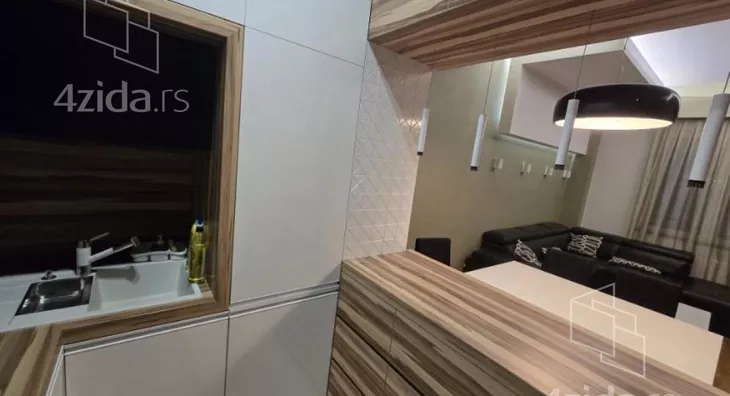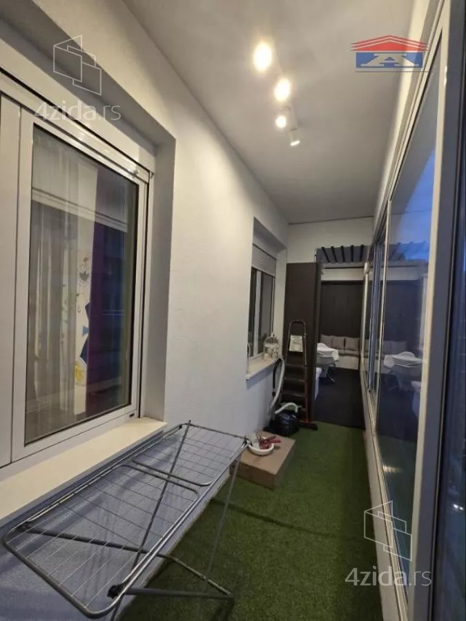 - Opremljenost: Namešteno - internet, interfon, TV, klima, veš mašina, sudo mašina, frižider, rerna, ležaj, plakar, kanalizacija