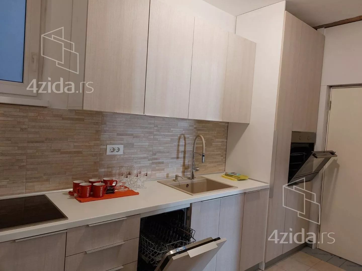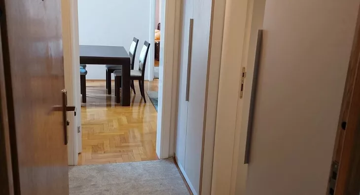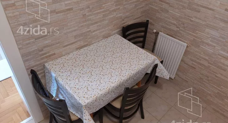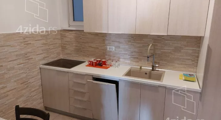 - Opremljenost: Namešteno - TV, klima, veš mašina, kuhinjski elementi, frižider, zamrzivač, šporet, ležaj, plakar, ugradni plakar