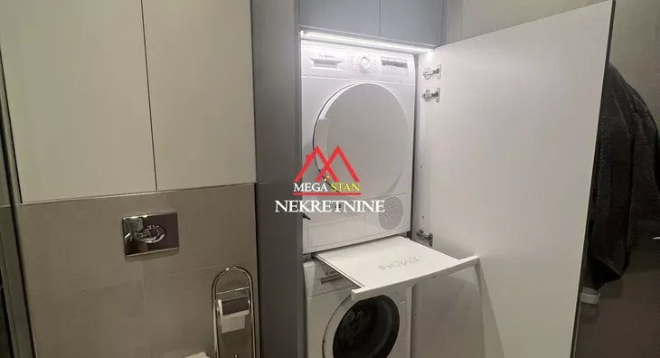 - Opremljenost: Namešteno - TV, klima, veš mašina, kuhinjski elementi, sudo mašina, frižider, zamrzivač, šporet, rerna, ležaj, plakar, ugradni plakar