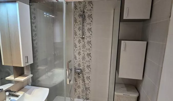 - Opremljenost: Namešteno - interfon, TV, klima, veš mašina, sudo mašina, frižider, rerna, ležaj, plakar