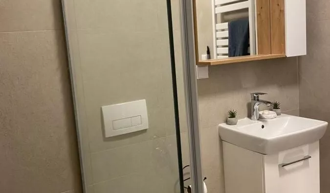 - Opremljenost: Namešteno - internet, interfon, TV, klima, veš mašina, sudo mašina, frižider, rerna, ležaj, plakar, kanalizacija