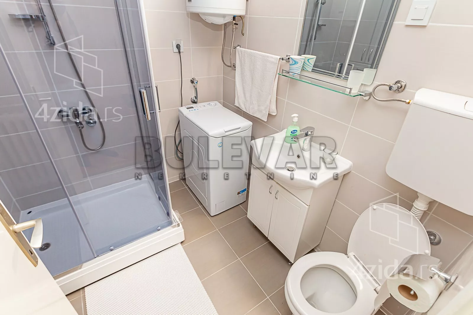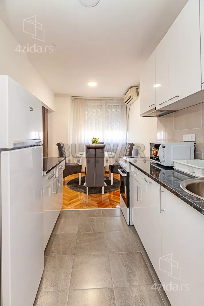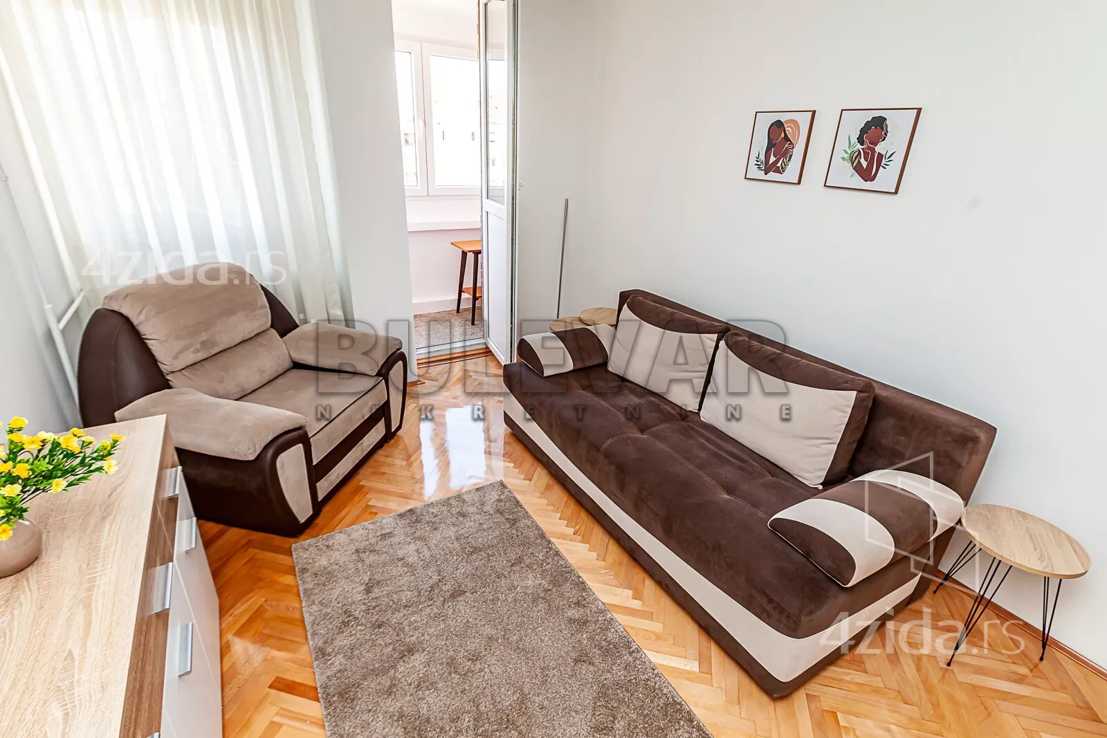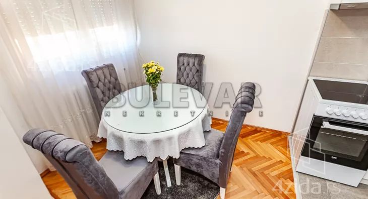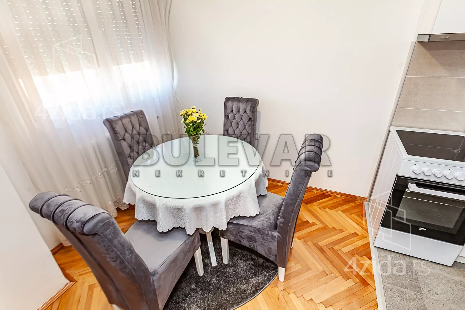 Stan se nalazi na X spratu stambene zgrade sa tri lifta. Površina stana je 51m2, po strukturi je dvosoban, a grejanje u stanu je centralno. Ima klimu. Ova nekretnina sastoji se od ulaznog hodnika, dnevnog boravka, trpezarije sa kuhinjom, spavaće sobe, kupatila i dve terase, od kojih je jedna zastakljena. Stan je kompletno renoviran, namešten i opremljen svim neophodnim kućnim aparatima. Zgrada se nalazi na pristupačnoj lokaciji pa će zakupcima u neposrednom okruženju na raspolaganju biti svi objekti od značaja za svakodnevni život. Obavezan depozit u visini jedne mesečne kirije. Agencijska usluga je 50% od prve mesečne kirije. Za više informacija javite se na telefon agencije. Ovo je samo deo naše ponude. Naša preporuka Vaš izbor! Ovu kao i druge nekretnine možete videti na našem sajtu. Čekamo Vas!