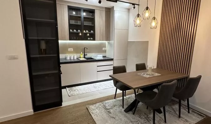 Izdaje se moderan, luksuzno opremljen stan na jednoj od najtraženijih lokacija u gradu. Stan se nalazi na 4. spratu stambenog kompleksa koji poseduje 3 lifta. Stan je površine 55m2 i sastoji se od ulaznog hodnika, dnevne sobe koja je povezana sa kuhinjom i trpezarijom, spavaće sobe, kupatila i terase. Grejanje u stanu je centralno. Stan je kompletno moderno opremljen svim potrebnim nameštajem i uređajima. Blizina restorana, butika i i kulturnih sadržaja dodatno naglašava posebnost ove nekretnine.