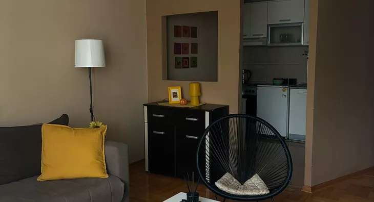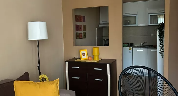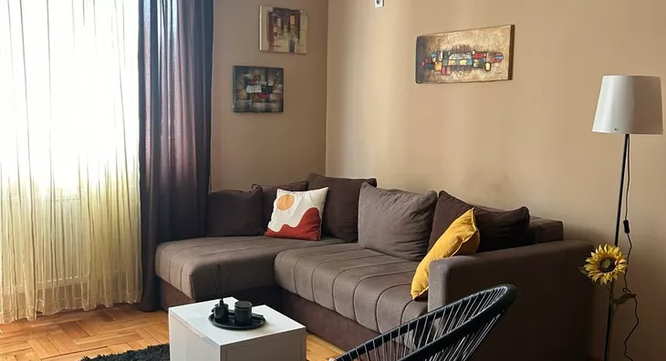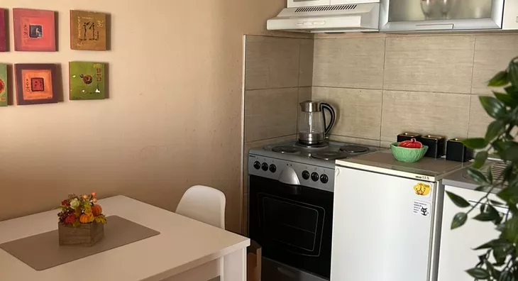 - Opremljenost: Namešteno - TV, ventilacija, veš mašina, kuhinjski elementi, frižider, šporet, rerna, ležaj, plakar