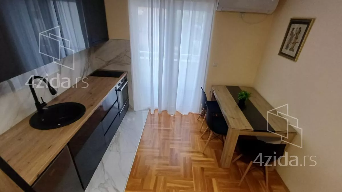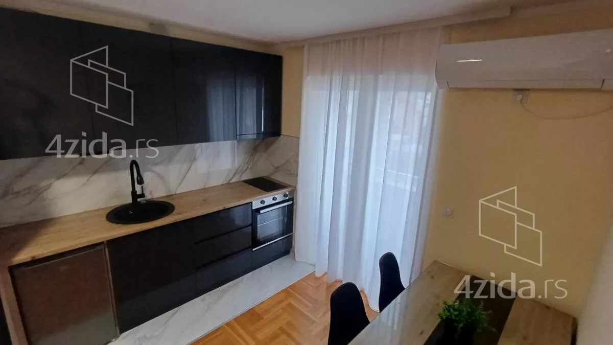 - Opremljenost: Namešteno - TV, klima, veš mašina, frižider, rerna, plakar