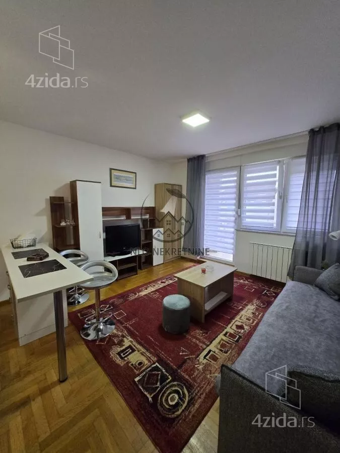 Izdaje se kompletno nameštena garsonjera površine 33 m², smeštena na petom spratu zgrade sa liftom. Stan se nalazi na odličnoj lokaciji, u neposrednoj blizini Bulevara, škole i dobro je povezan sa svim fakultetima, što ga čini idealnim izborom za studente ili zaposlene osobe.