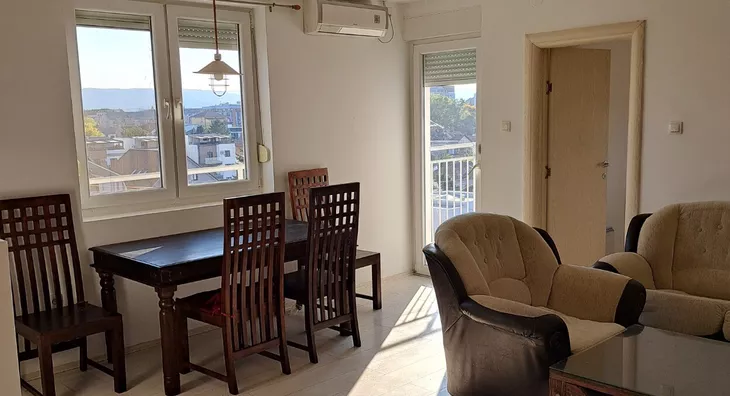 - Opremljenost: Namešteno - TV, klima, veš mašina, kuhinjski elementi, frižider, zamrzivač, mikrotalasna rerna, šporet, rerna, ležaj, ugradni plakar