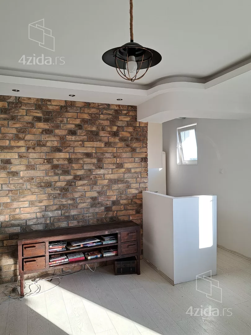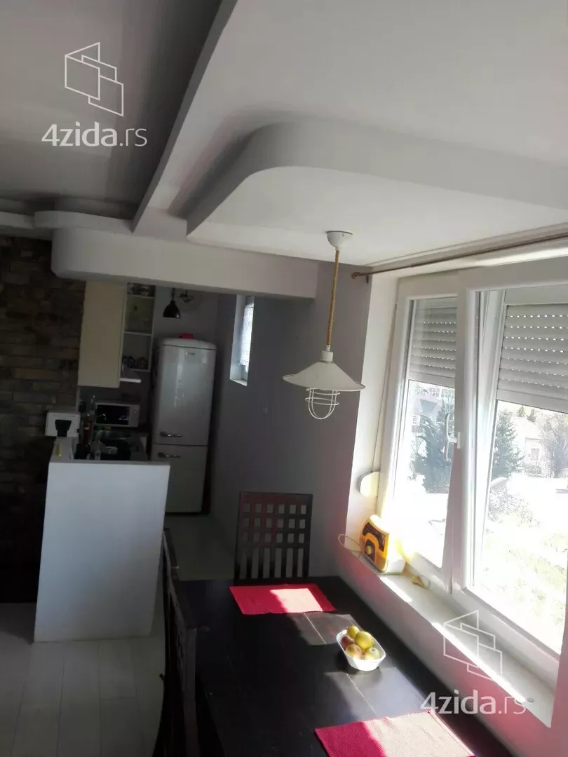 Kvalitetan laminat,ugradni plakar,mirna terasa,odlično izolovan pa su računi mali i za grejanje i za hlađenje.Grejanje na klimu i na TA pec iako zimi TA pec bukvalno radi za sušenje veša a ne zbog stvarne potrebe Informatika 2300 struja od 3000-6000 (zimi )