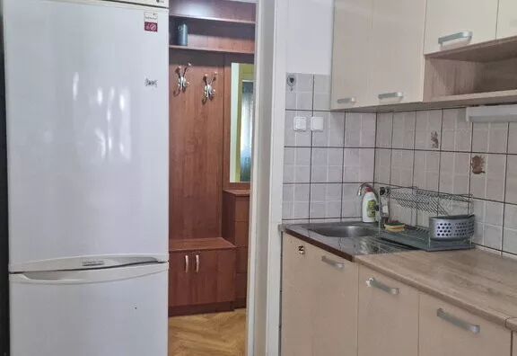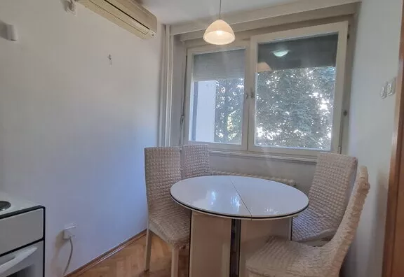 Opremljen dvosoban stan od 60 m2 u centru na prvom spratu u zgradi sa liftom. Sastoji se od hodnika, velike dnevne sobe sa izlazom na terasu, spavaće sobe, kuhinje sa trpezarijom i kupatila. Prozori su drveni, na podovima su parket i pločice. Grejanje gradsko sa alokatorima. Obavezan depozit u visini jedne kirije, minimalni najam 6 meseci za nepušače, bez kućnih ljubimaca.